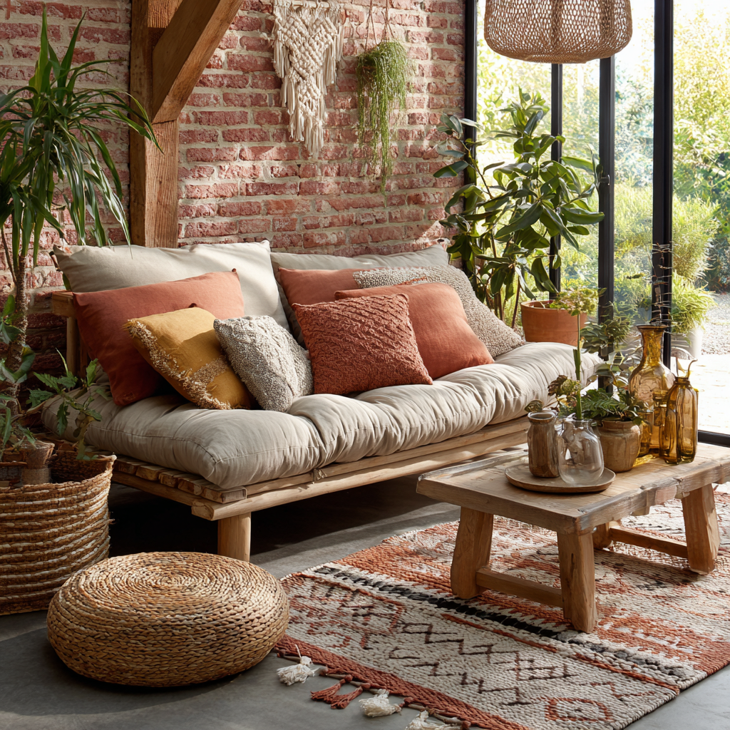 - Couleurs : Gris, beige, blanc cassé, touches de terracotta