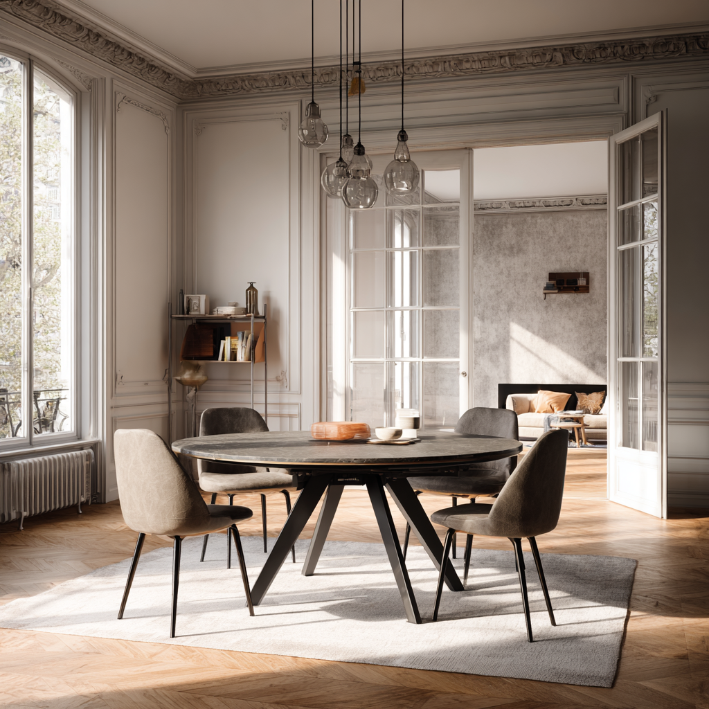 Les tables rondes extensibles sont la réponse parfaite pour ceux qui hésitent entre convivialité quotidienne et capacité d'accueil. Elles offrent :