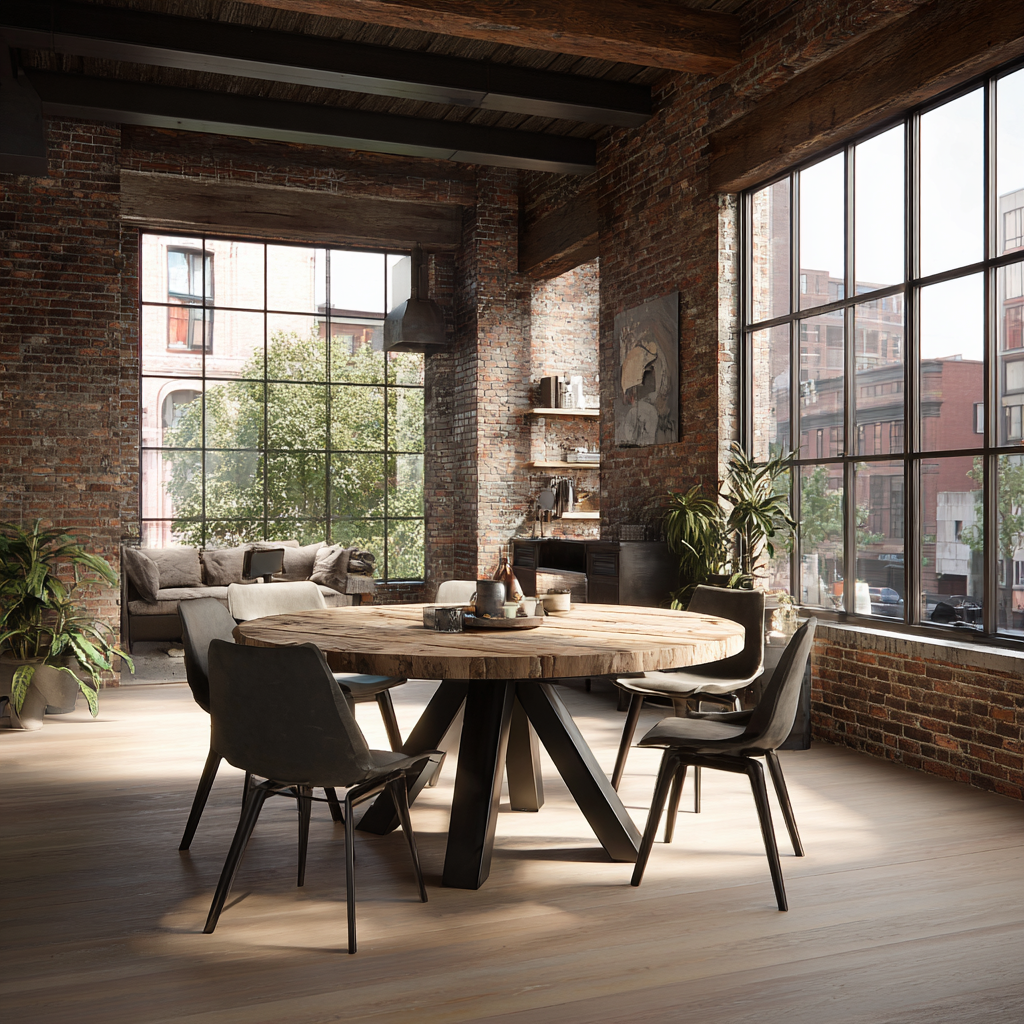Industriel Bois brut + métal, design robuste. Idéal pour les lofts et intérieurs urbains.