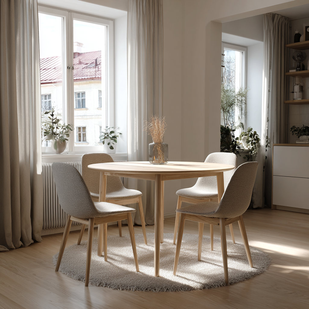 Réponse : La table ronde gagne pour les petits espaces. Elle occupe moins de surface au sol et crée une sensation d'harmonie plutôt que d'encombrement. Un diamètre de 100 cm est parfait pour un petit appartement.