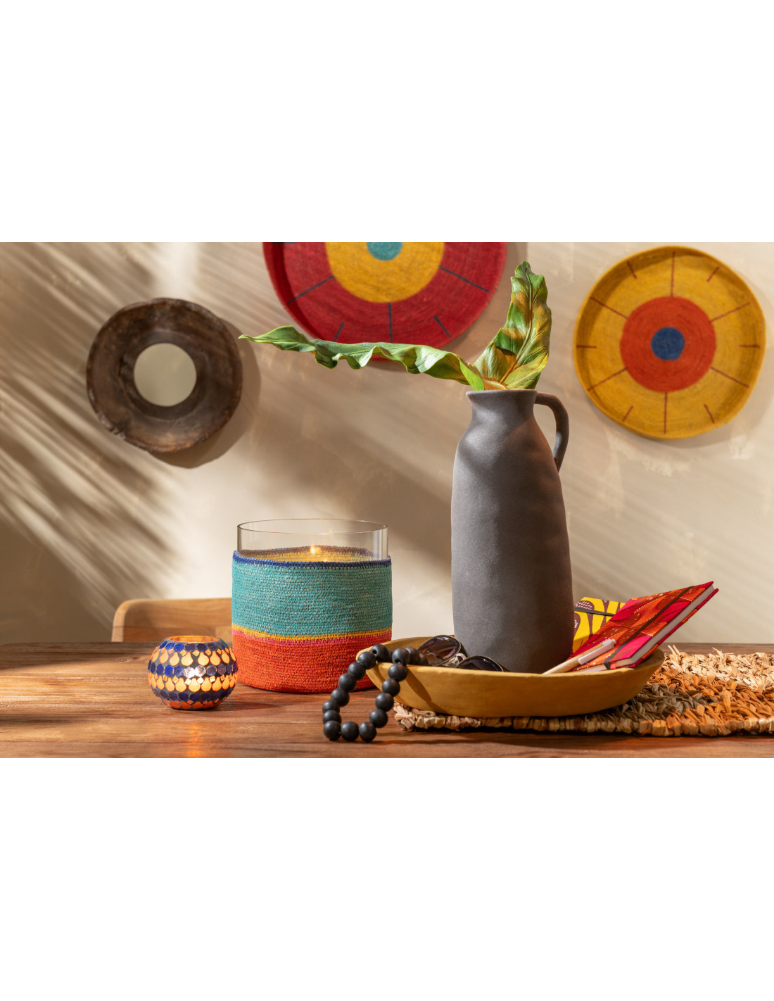 Corbeille déco Rond en Papier mâché Jaune Jilli (Lot de 3) - 2