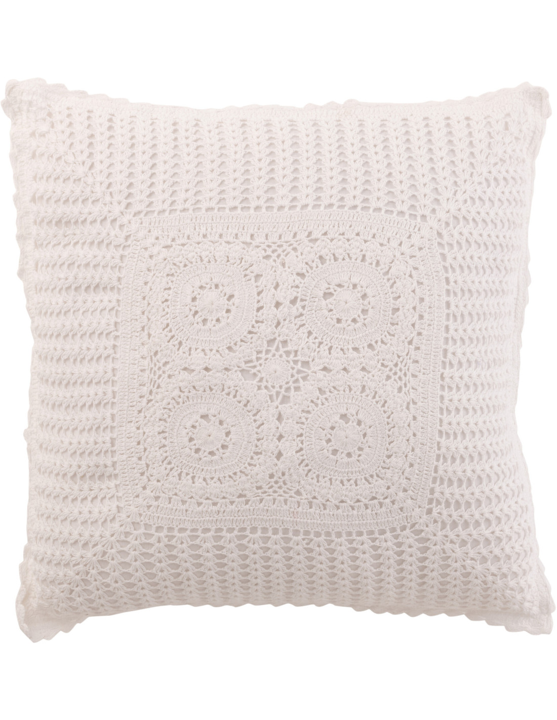 Coussin Carré Dolva 45x45 en Coton Blanc Motif dentelle - 1