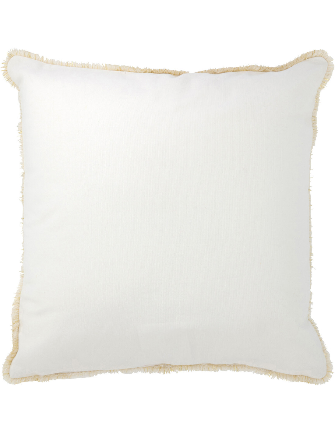 Coussin Carré Festive 45x45 en Polyester Blanc Doré Motif Sapin de Noël Avec franges - 1