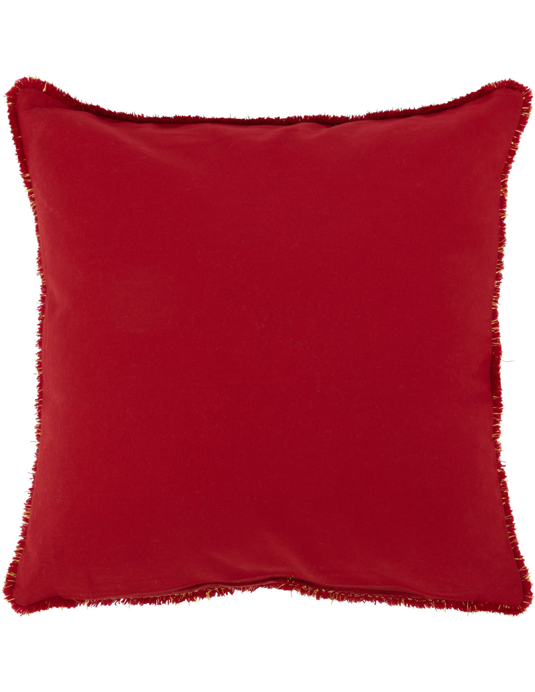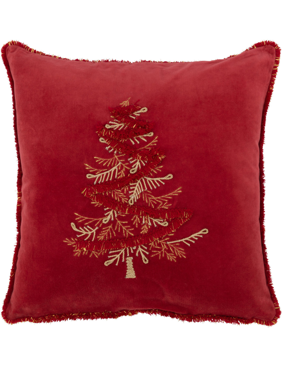 Coussin Carré Festive 45x45 en Polyester Rouge Doré Motif Sapin de Noël Avec franges - 1
