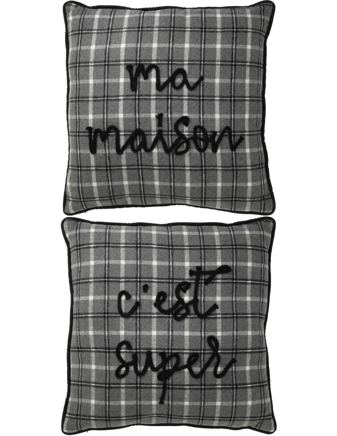 Coussin Carré Great 45x45 en Polyester Blanc Rouge Motif carreaux Message Ma Maison C'est Super (Lot de 2) - 1