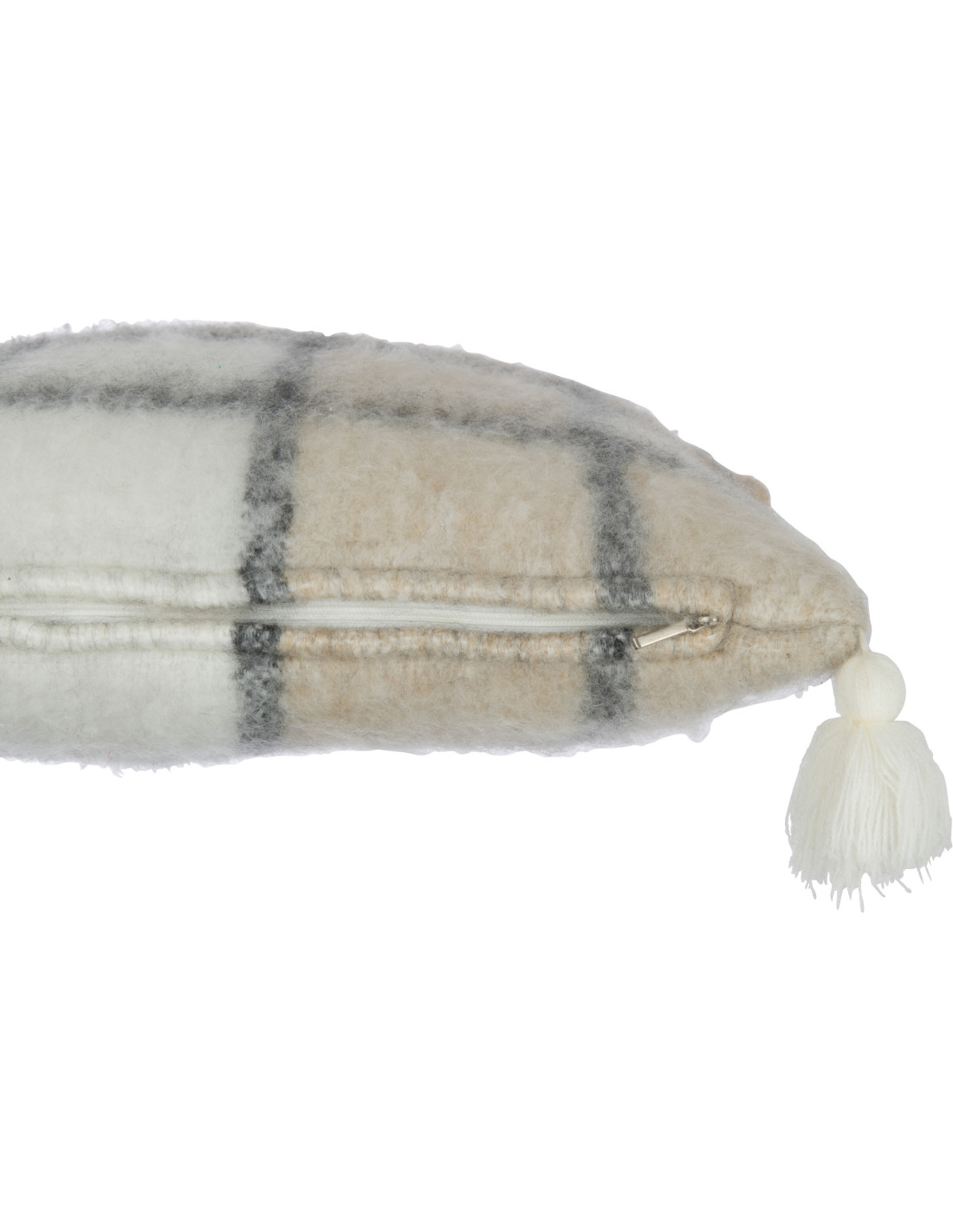 Coussin Carré Harmony 45x45 en Polyester Beige Motif carreaux Avec pompons - 1