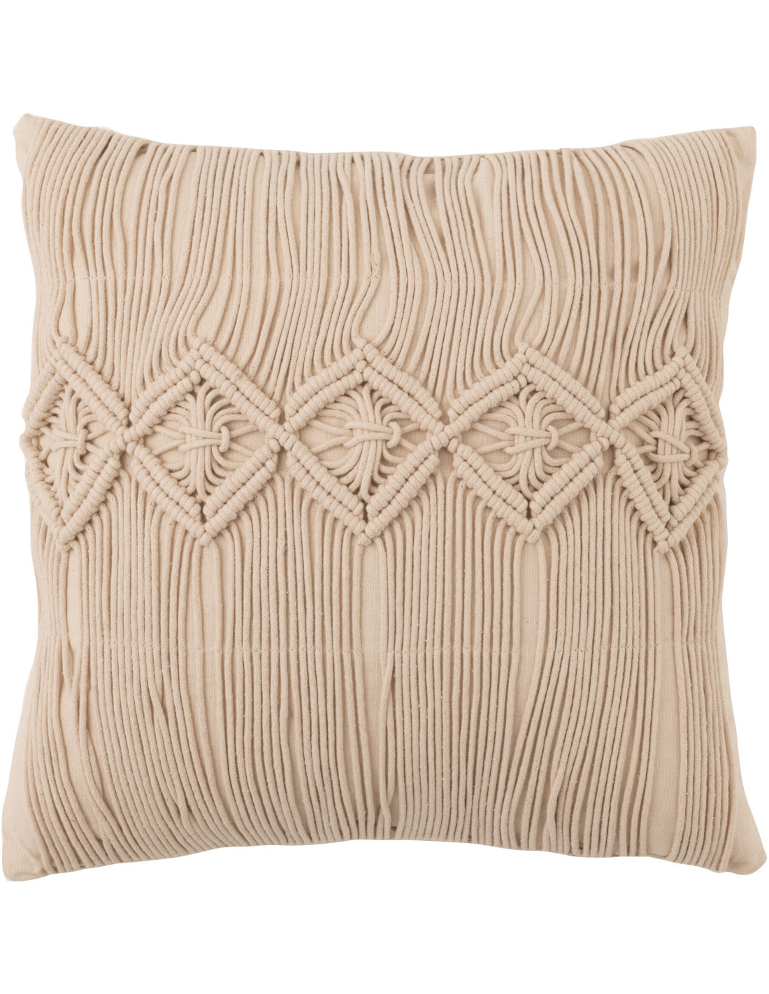 Coussin Carré Linéa 45x45 en Coton Beige Motif macramé