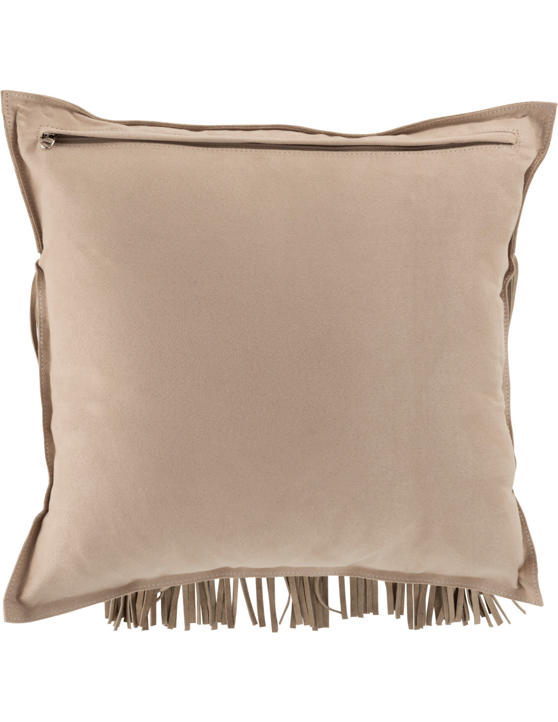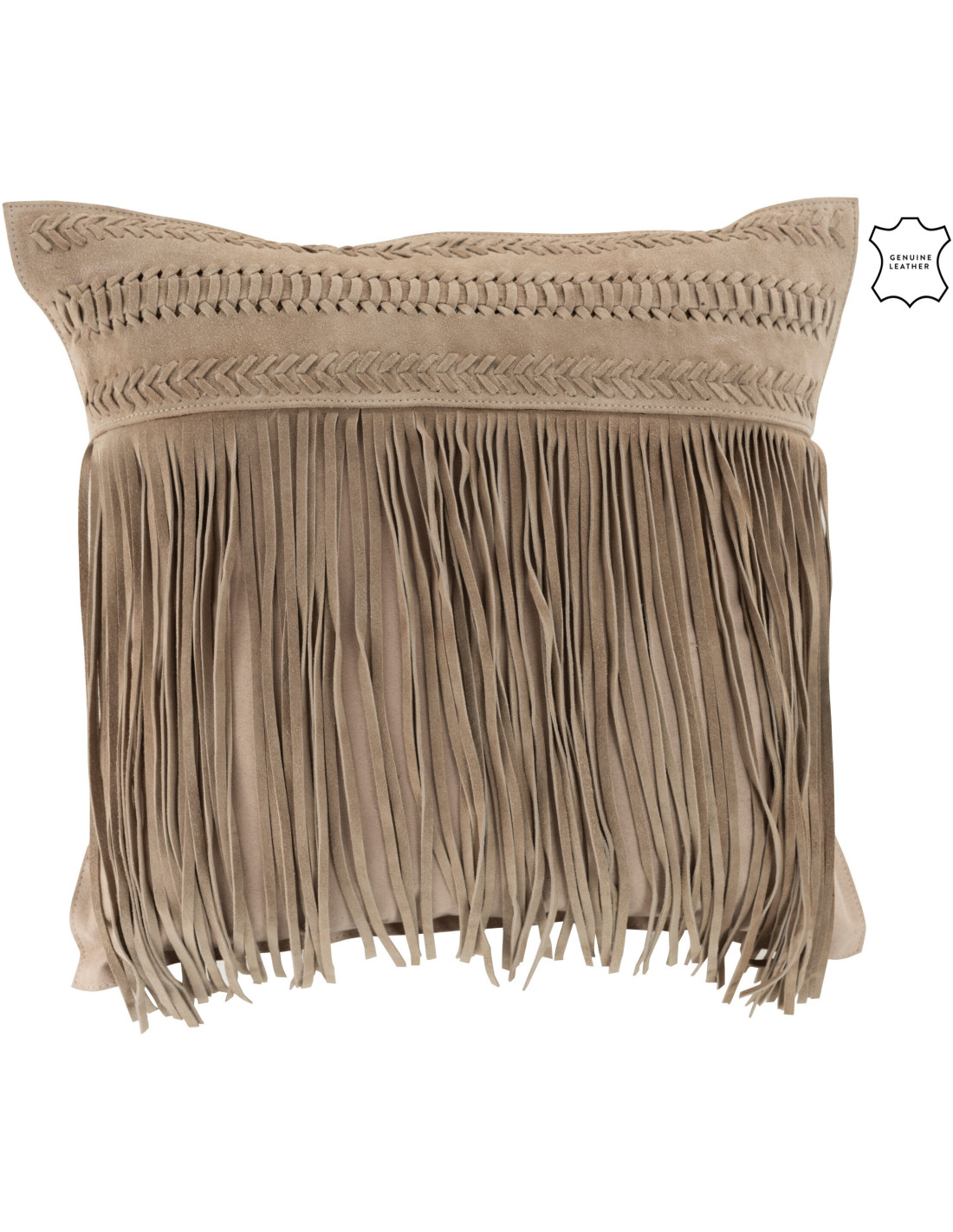 Coussin Carré Wildly 45x45 en Cuir véritable Gris clair Motif flêches Avec franges - 1