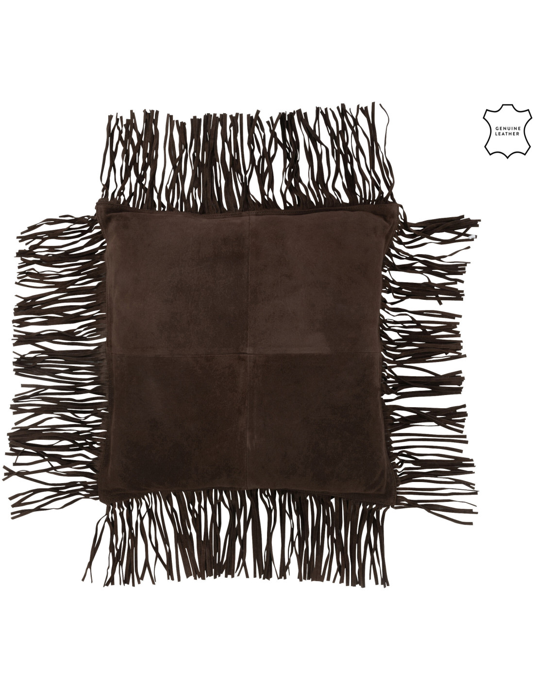 Coussin Carré Wildly 45x45 en Cuir véritable Marron foncé Avec franges