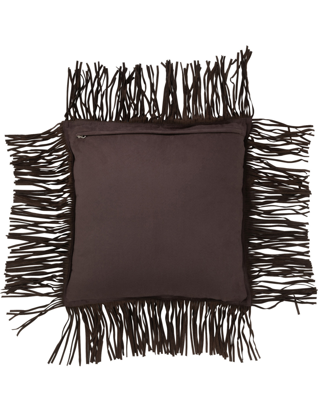 Coussin Carré Wildly 45x45 en Cuir véritable Marron foncé Avec franges - 1