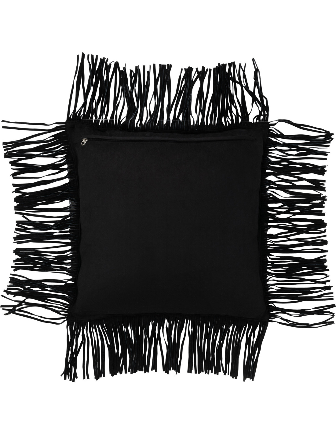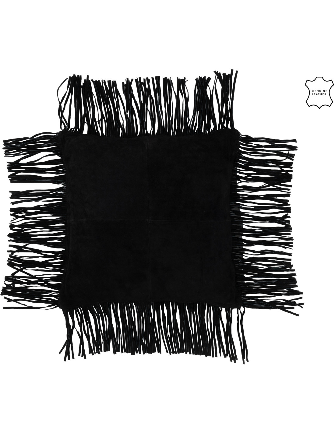 Coussin Carré Wildly 45x45 en Cuir véritable Noir Avec franges - 1