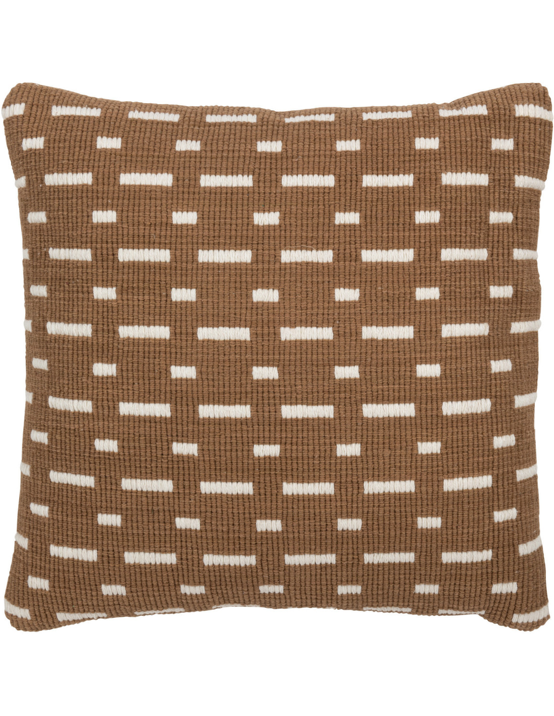 Coussin d'extérieur Carré 45x45 en Polyester Marron Blanc Motif tirets Leandro