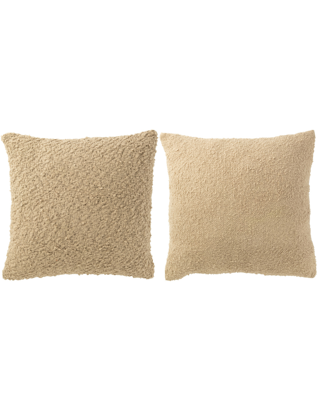 Coussin doux pompons Carré 45x45 en Coton Beige Bouclette Motif serré et lâche Lovey (Lot de 2)