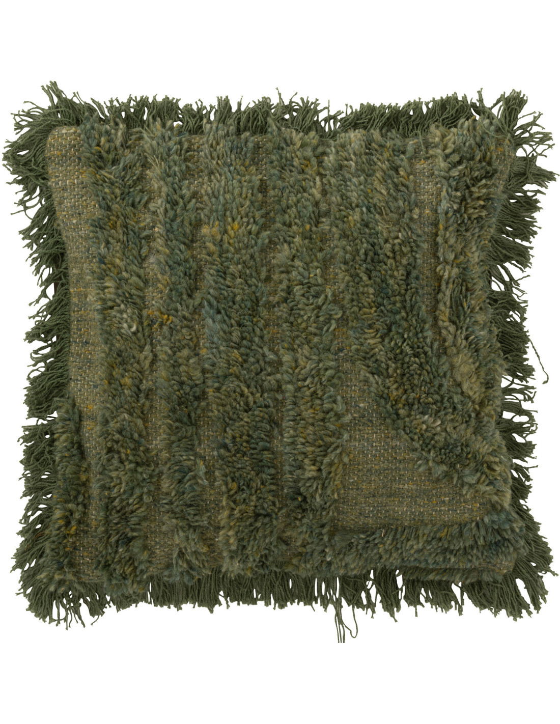 Coussin moderne poils longs Carré 45x45 en Laine Vert kaki Tufté Shaggy - 1