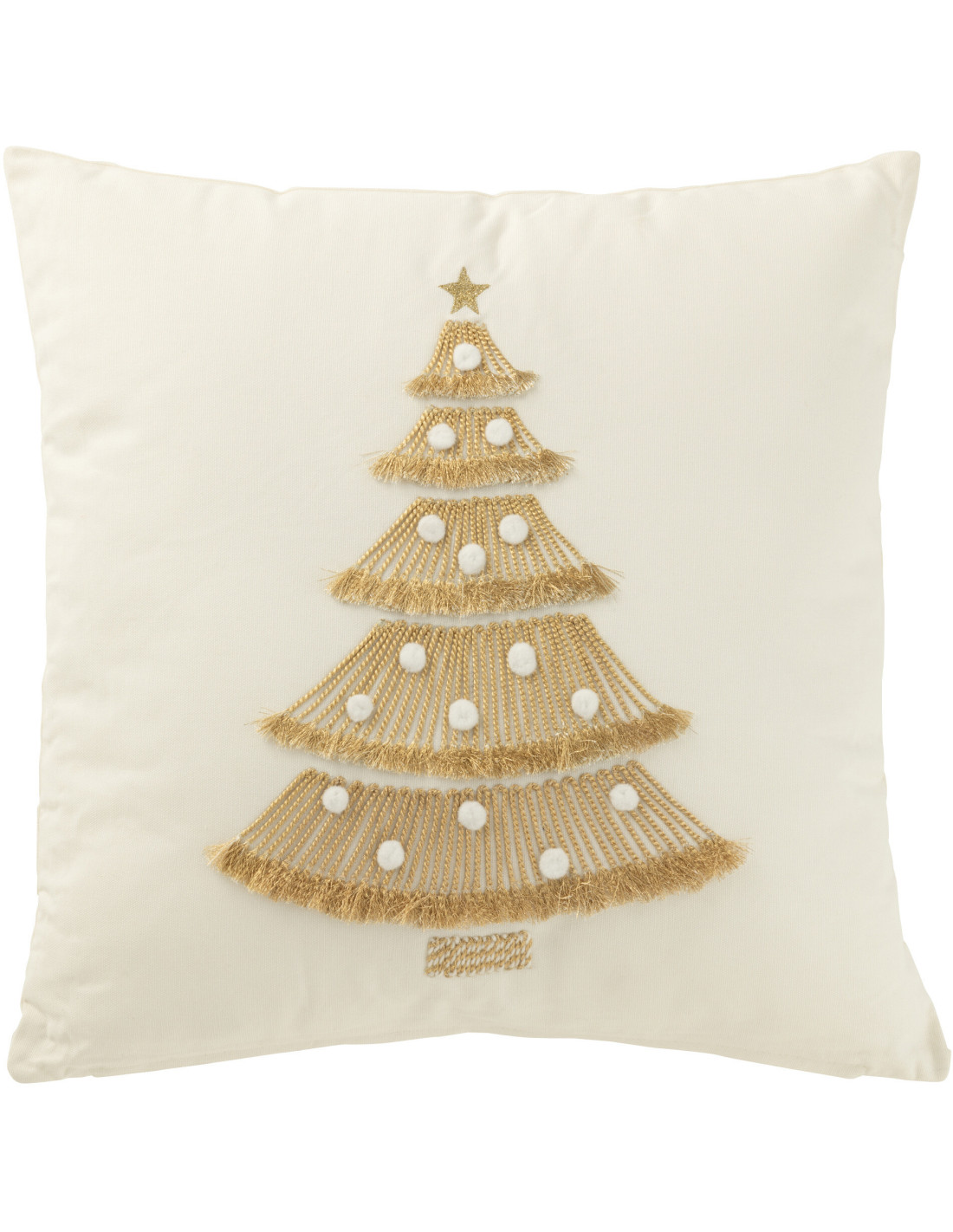 Coussin original Carré 45x45 en Coton Blanc Doré Avec pompons Motif Sapin de Noël Joryn - 1