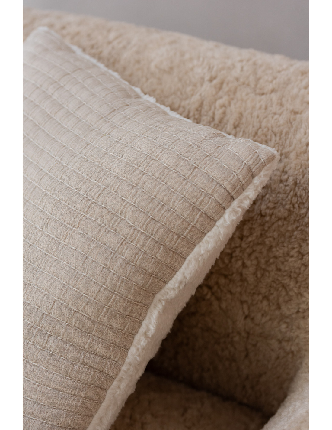 Coussin original Carré 45x45 en Coton Tissu Gris Motif coutures Teddy - 3