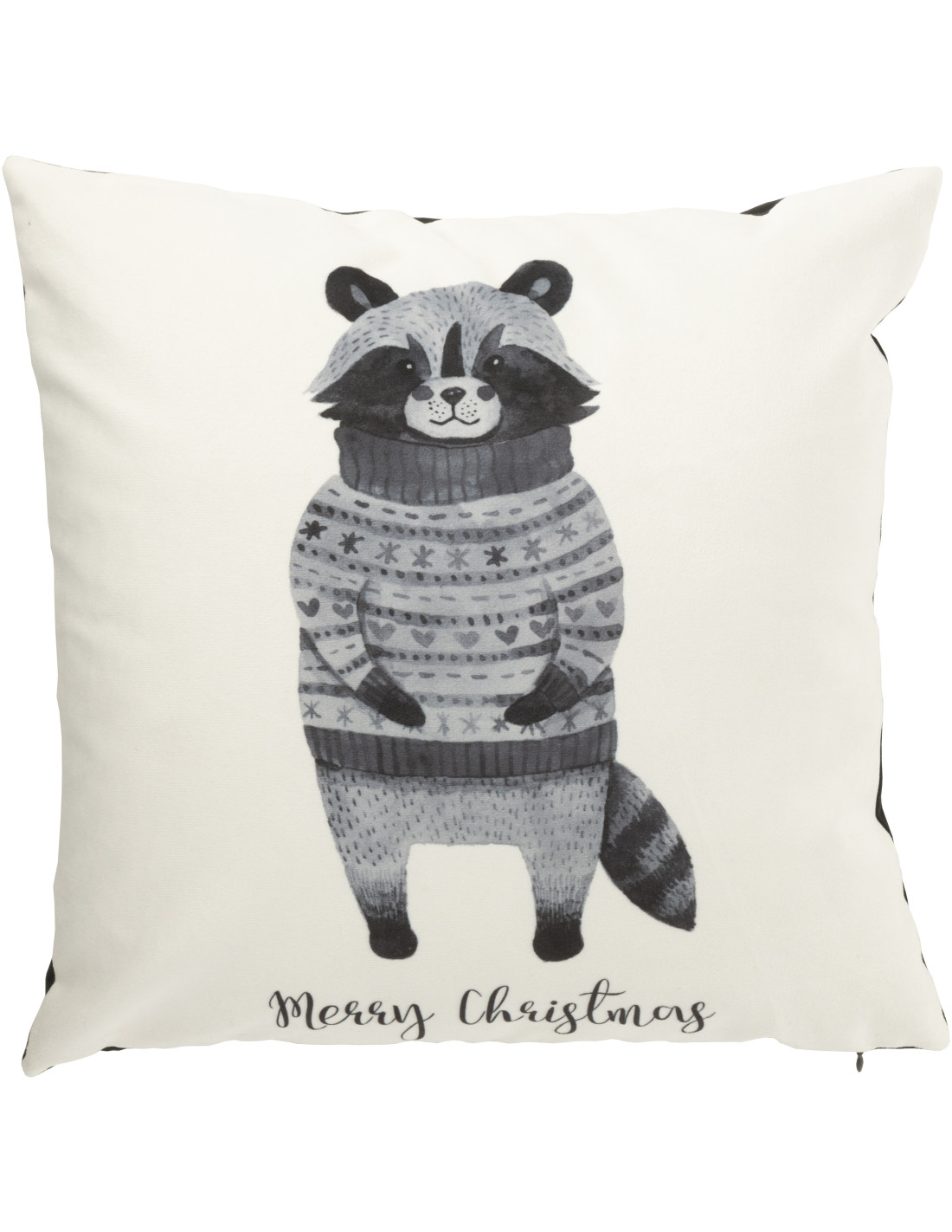 Coussin original Raton laveur Carré 45x45 en Velours Blanc Noir Merry Christmas - 1