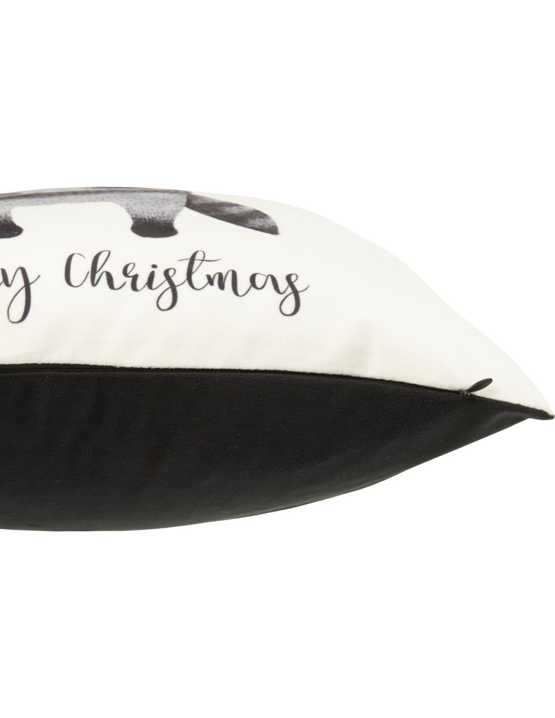 Coussin original Raton laveur Carré 45x45 en Velours Blanc Noir Merry Christmas - 3