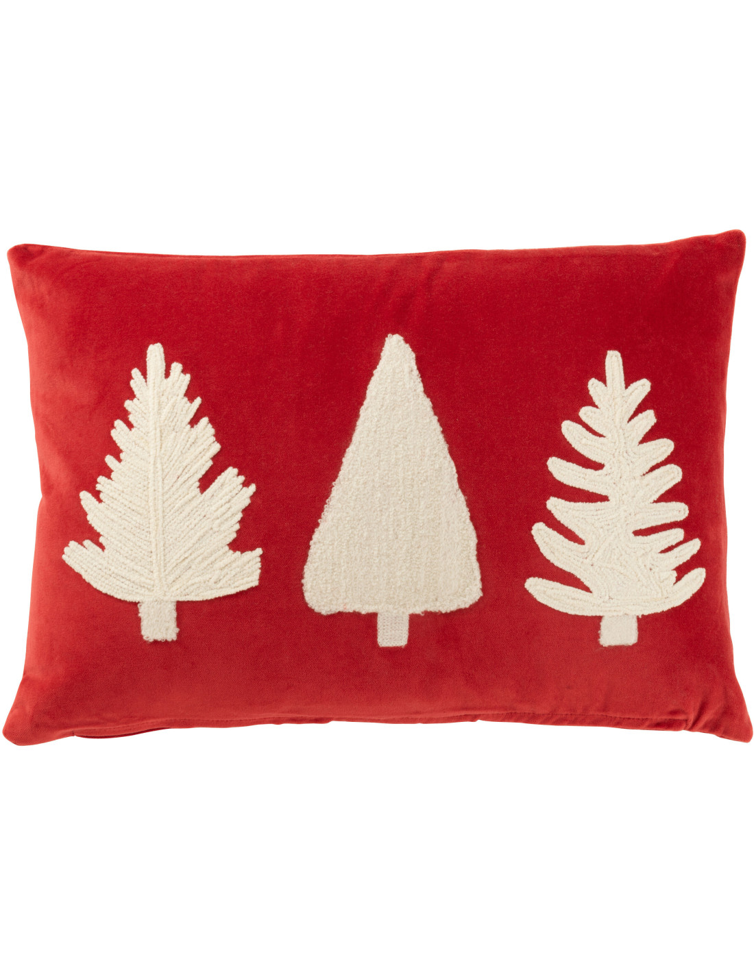 Coussin original Rectangulaire 45x30 en Velours Rouge Blanc Motif Sapins Alythra - 1