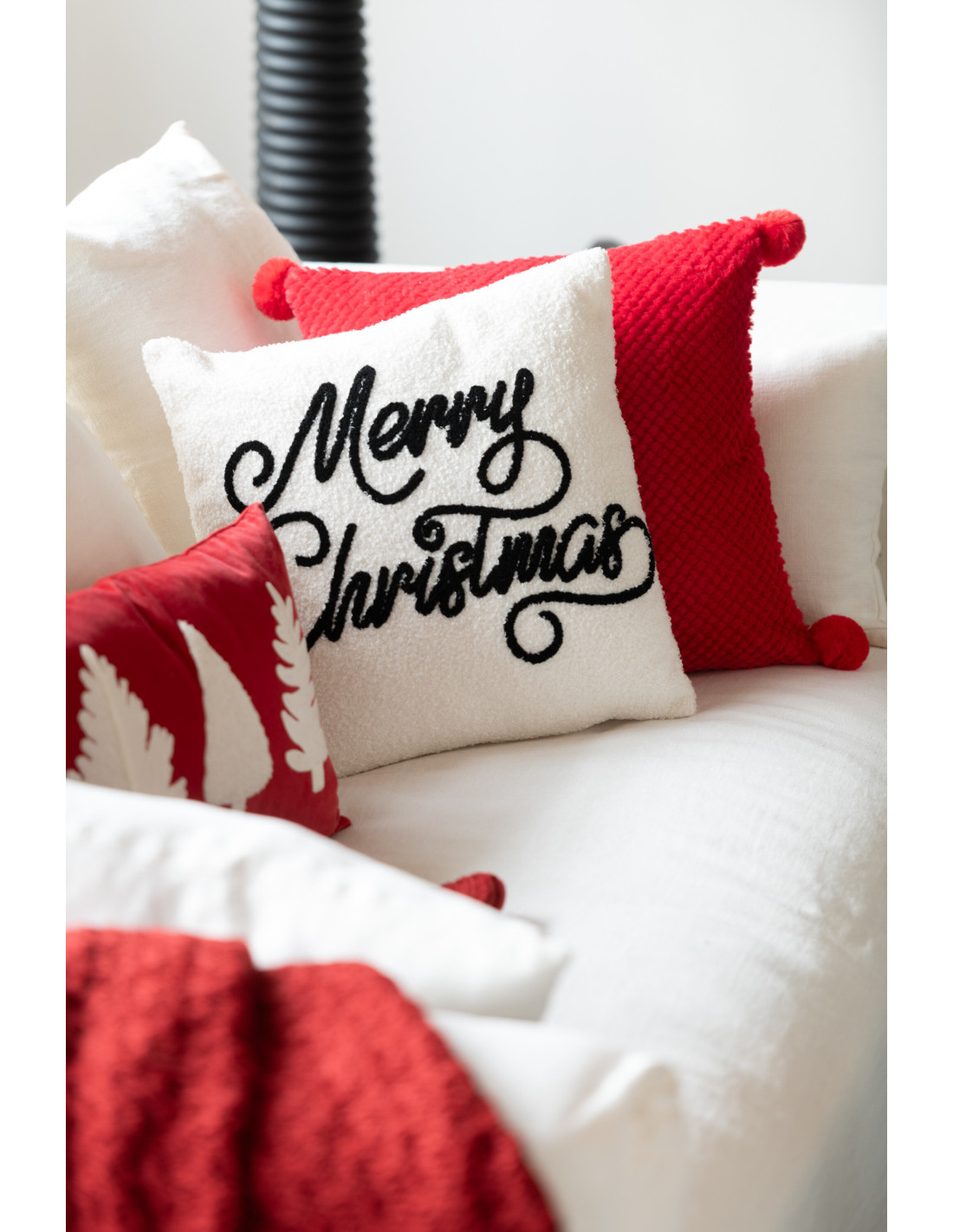 Coussin original Rectangulaire 45x30 en Velours Rouge Blanc Motif Sapins Alythra