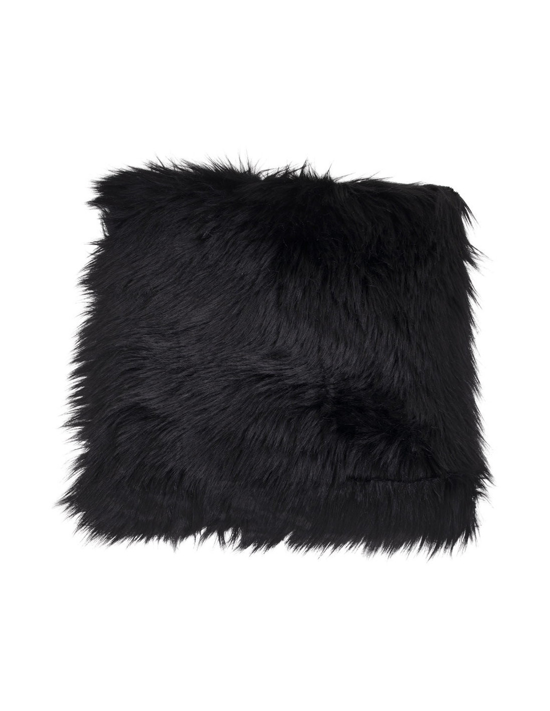 Coussin Peau de mouton poils longs Carré 40x40 Fausse fourrure Noir Lambskin