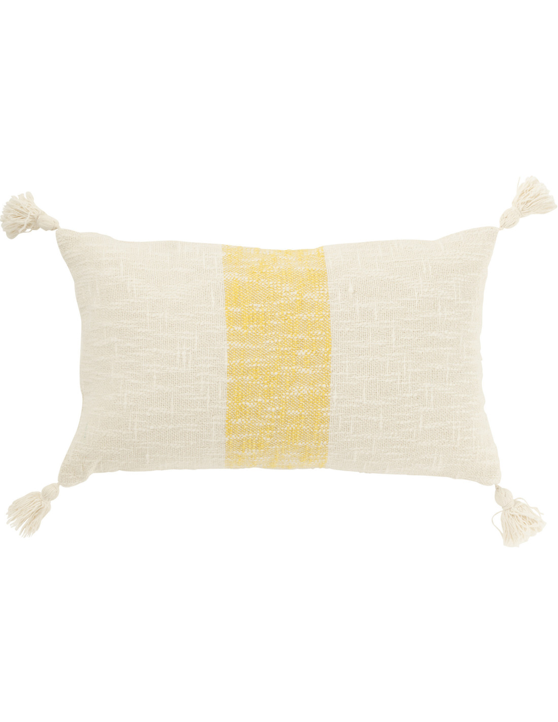 L’association de l’écru et du jaune crée une ambiance chaleureuse et apaisante. Ce coussin s’intègre facilement dans un intérieur naturel, bohème ou contemporain.