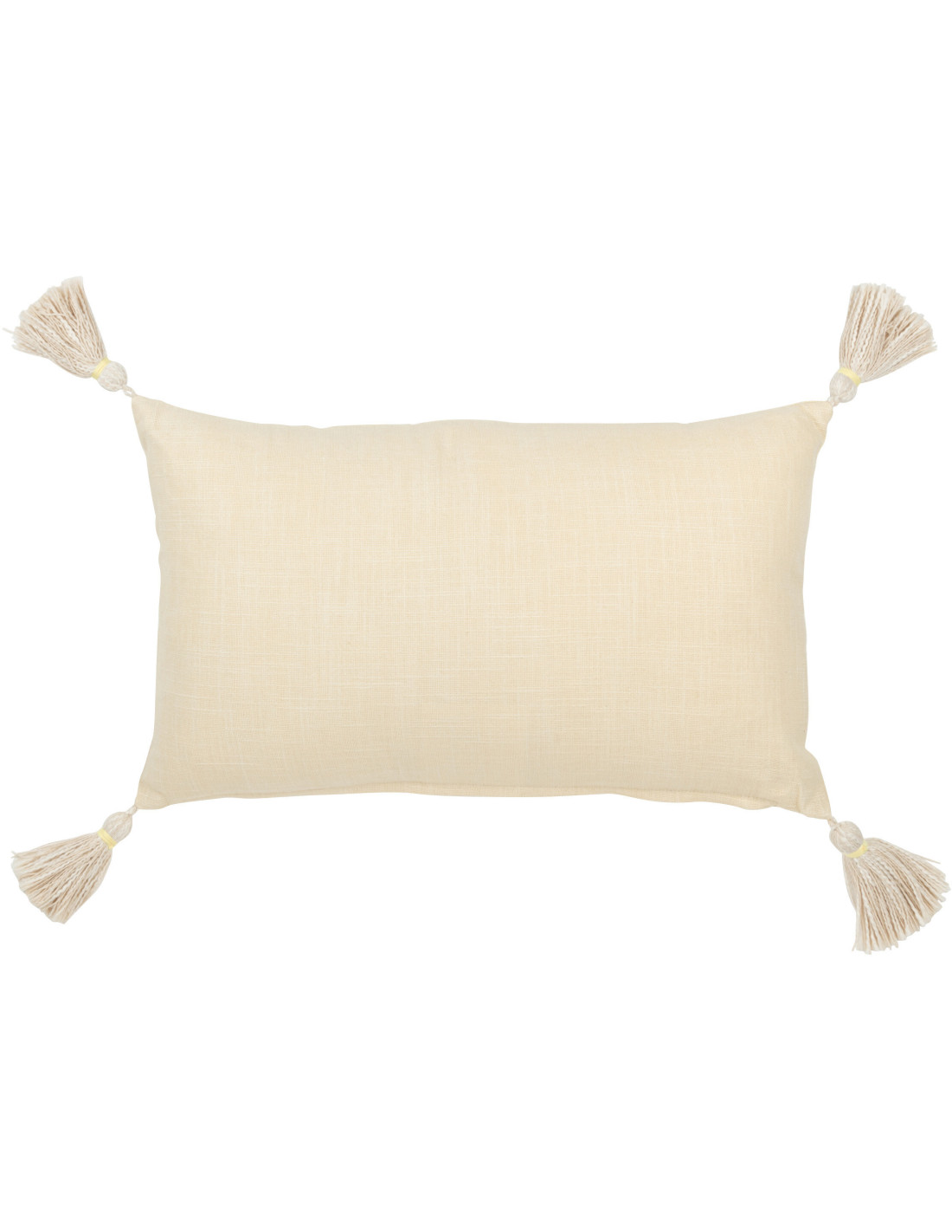 Coussin Rectangulaire 50x30 en Coton Beige Jaune avec pompons Motif fleur Fleurio - 1