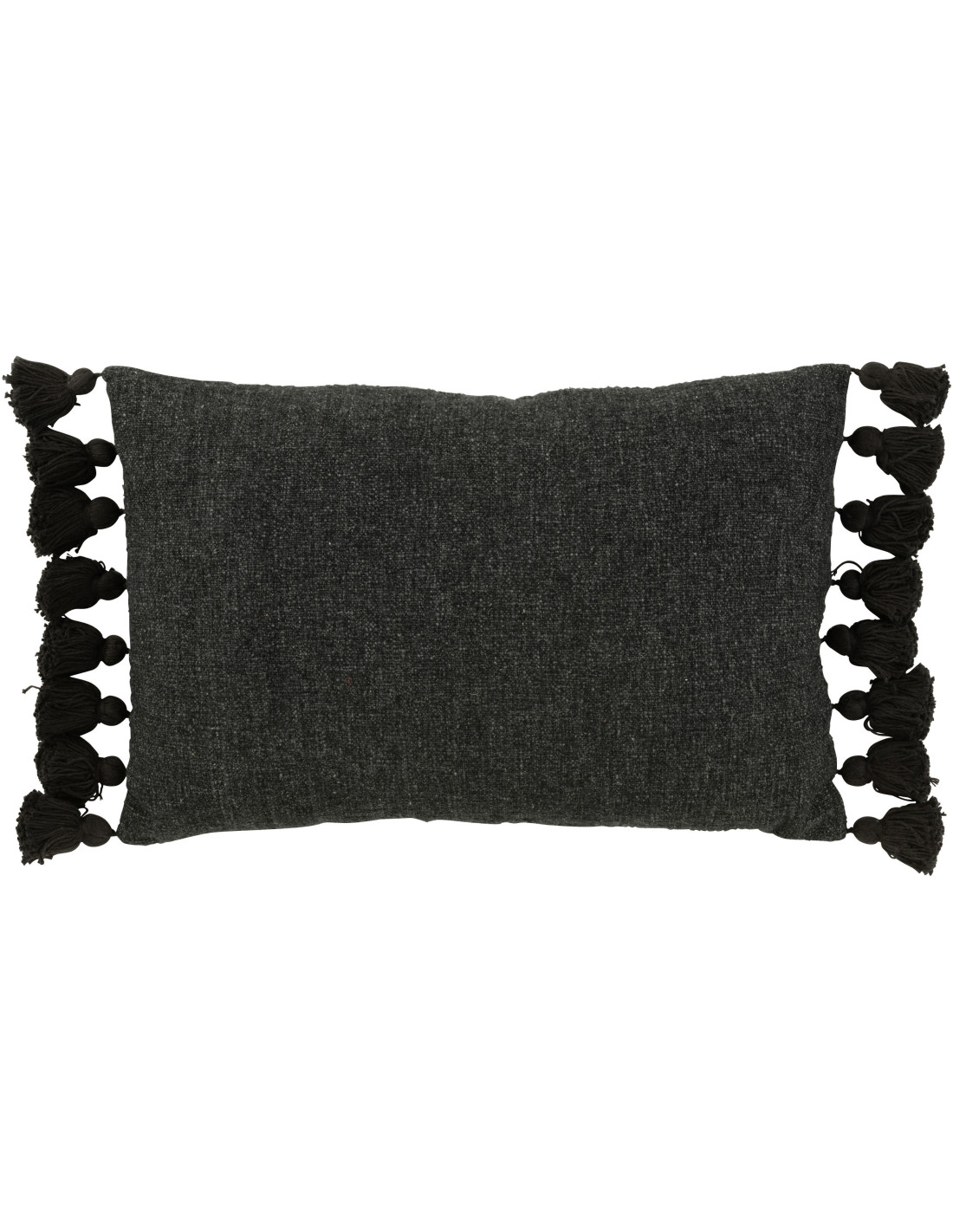Coussin Rectangulaire Frisso 60x40 en Coton Noir Avec pompons