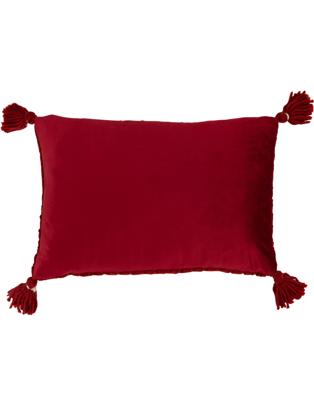 Coussin Rectangulaire Rezata 60x40 en Polyester Tissu acrylique Rouge Motif crochet Avec pompons - 1