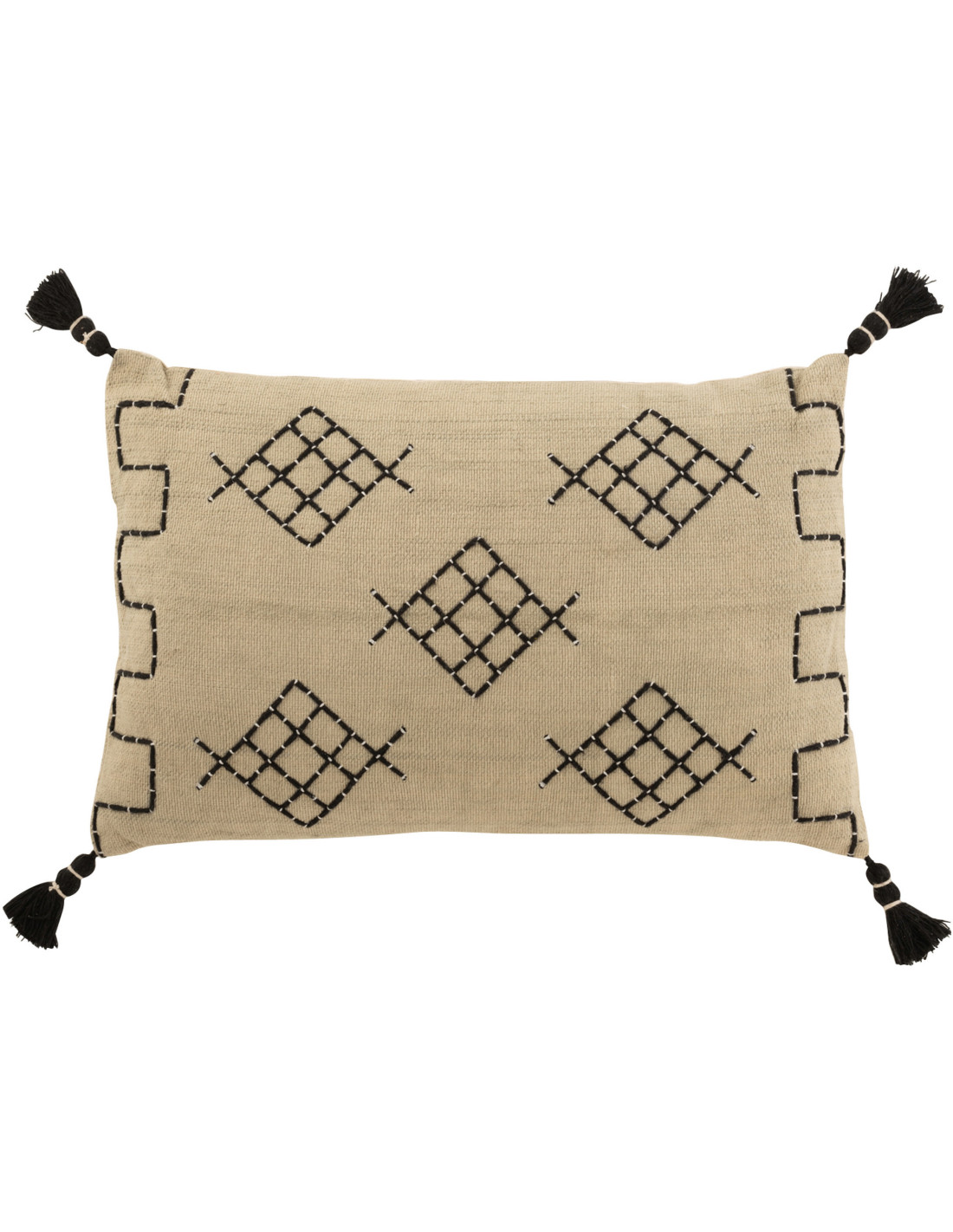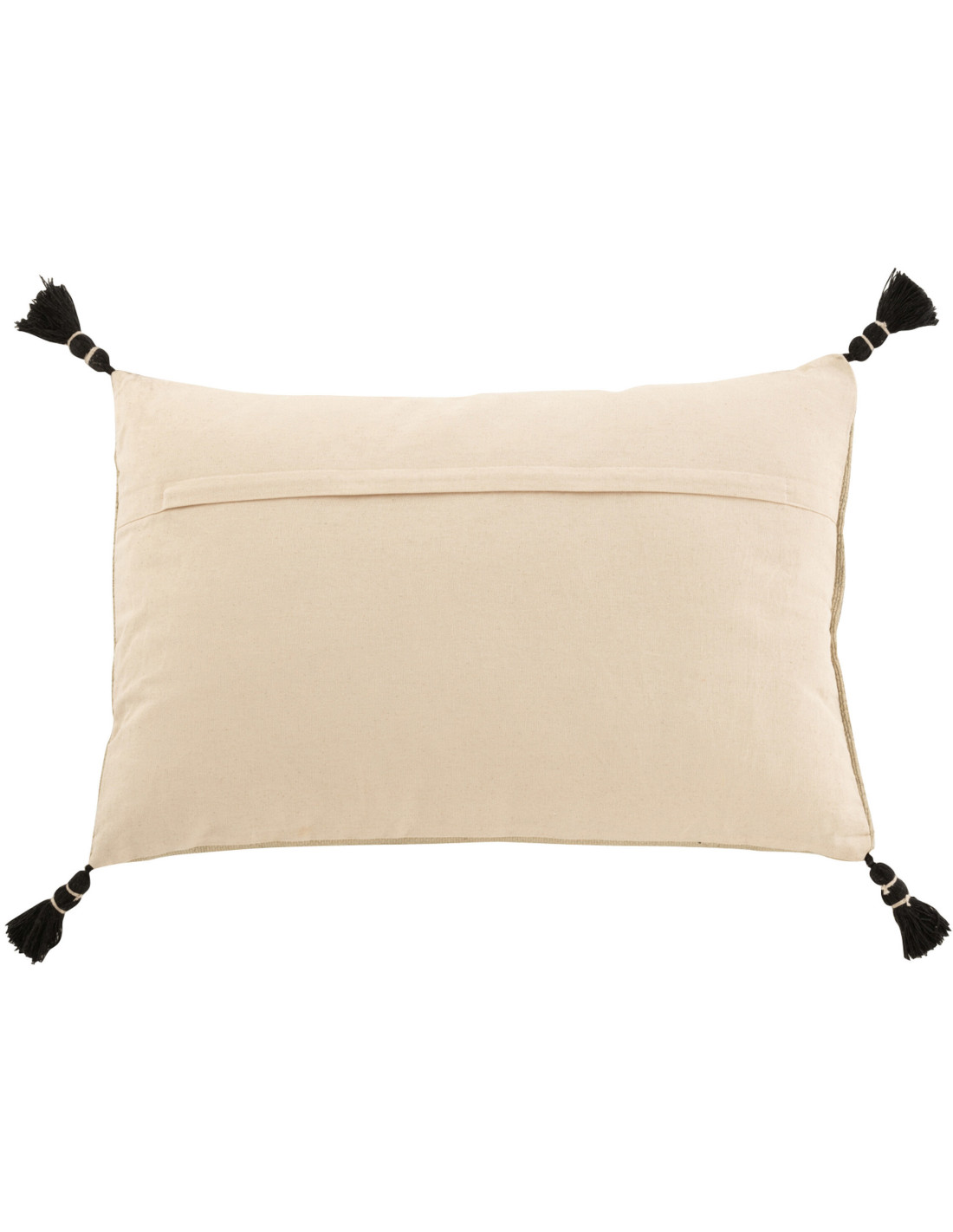 Coussin Rectangulaire Rune 60x40 en Coton Beige Noir Motif géométrique Avec pompons - 1