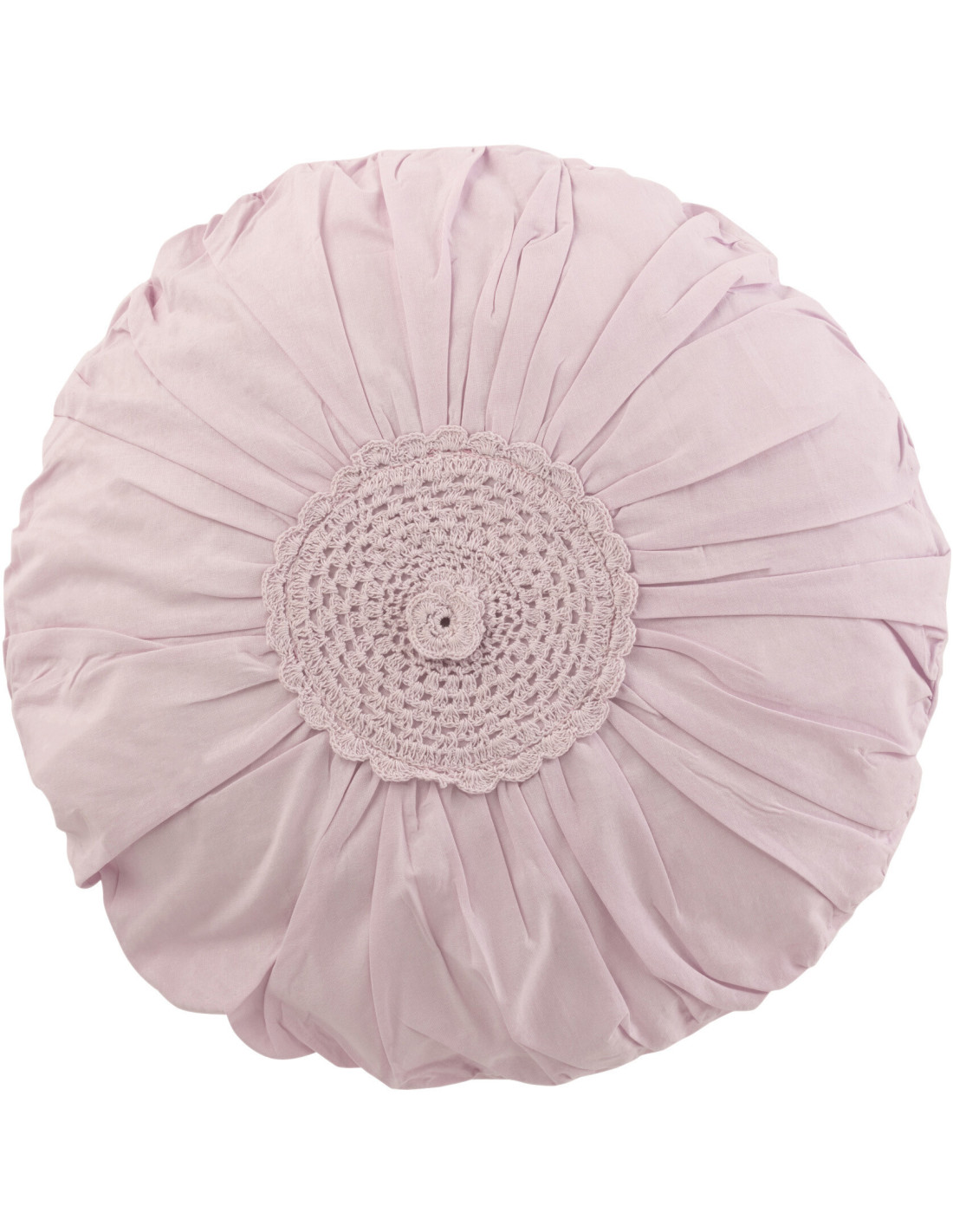Coussin Rond Dolva 40 cm en Coton Rose Motif dentelle