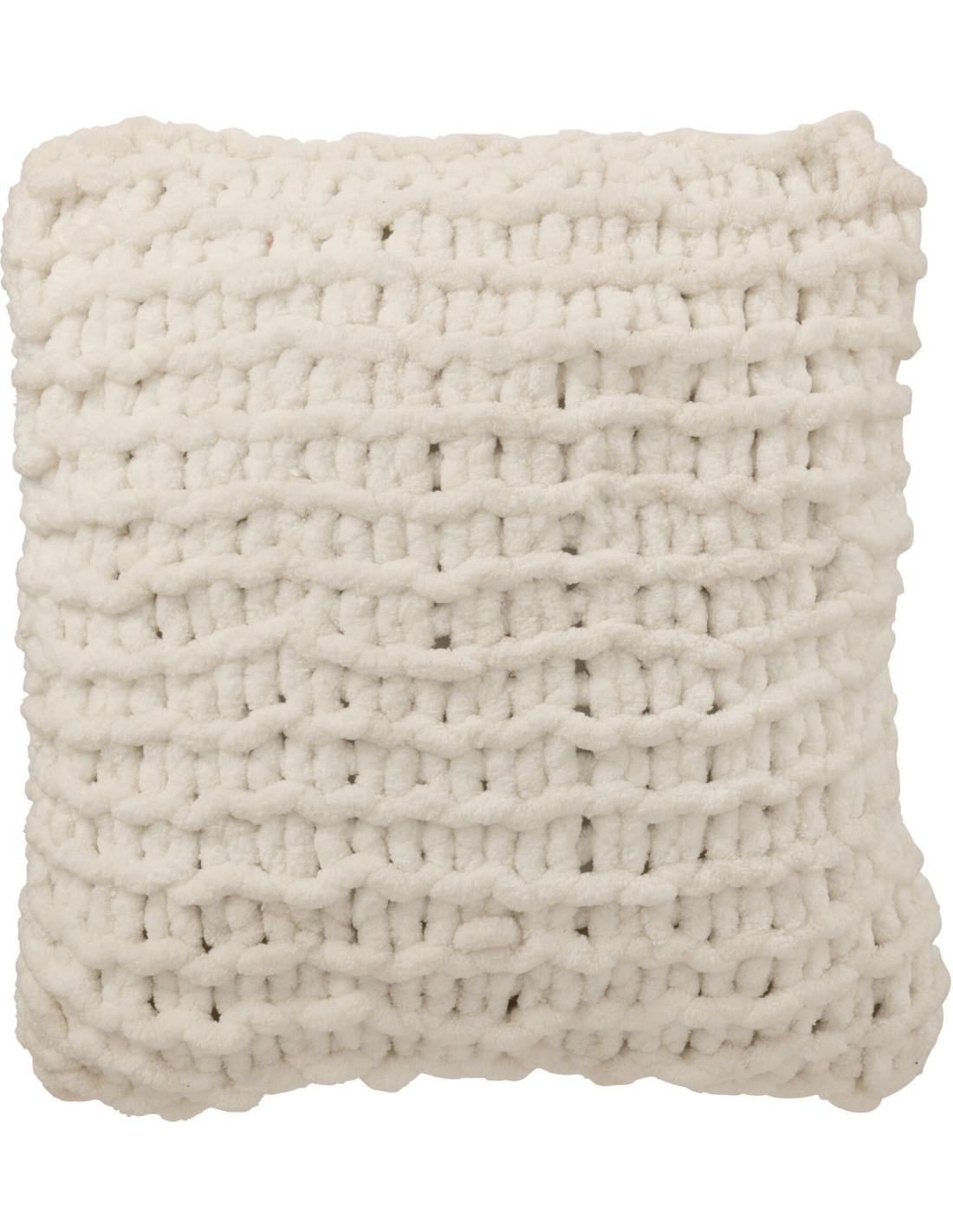 Coussin Tricot douceur Carré 50x50 en Tissu Blanc Motif tricoté Knitty