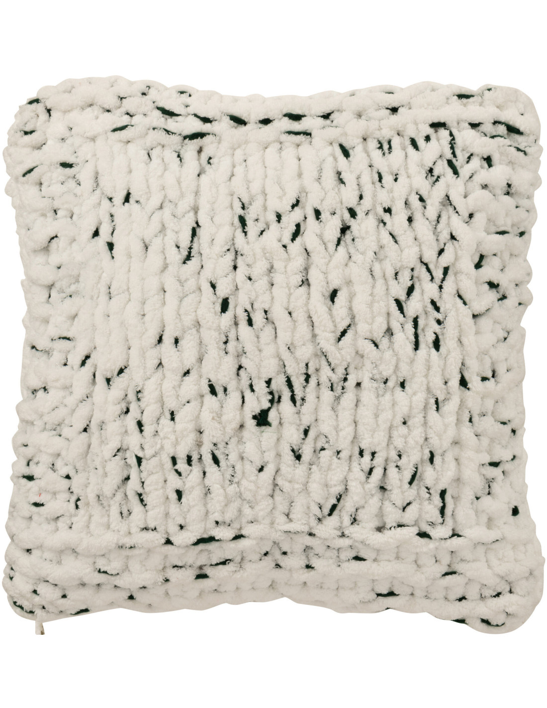 Coussin Tricot douceur Carré 50x50 en Tissu Blanc Vert foncé Motif tricoté Knitty