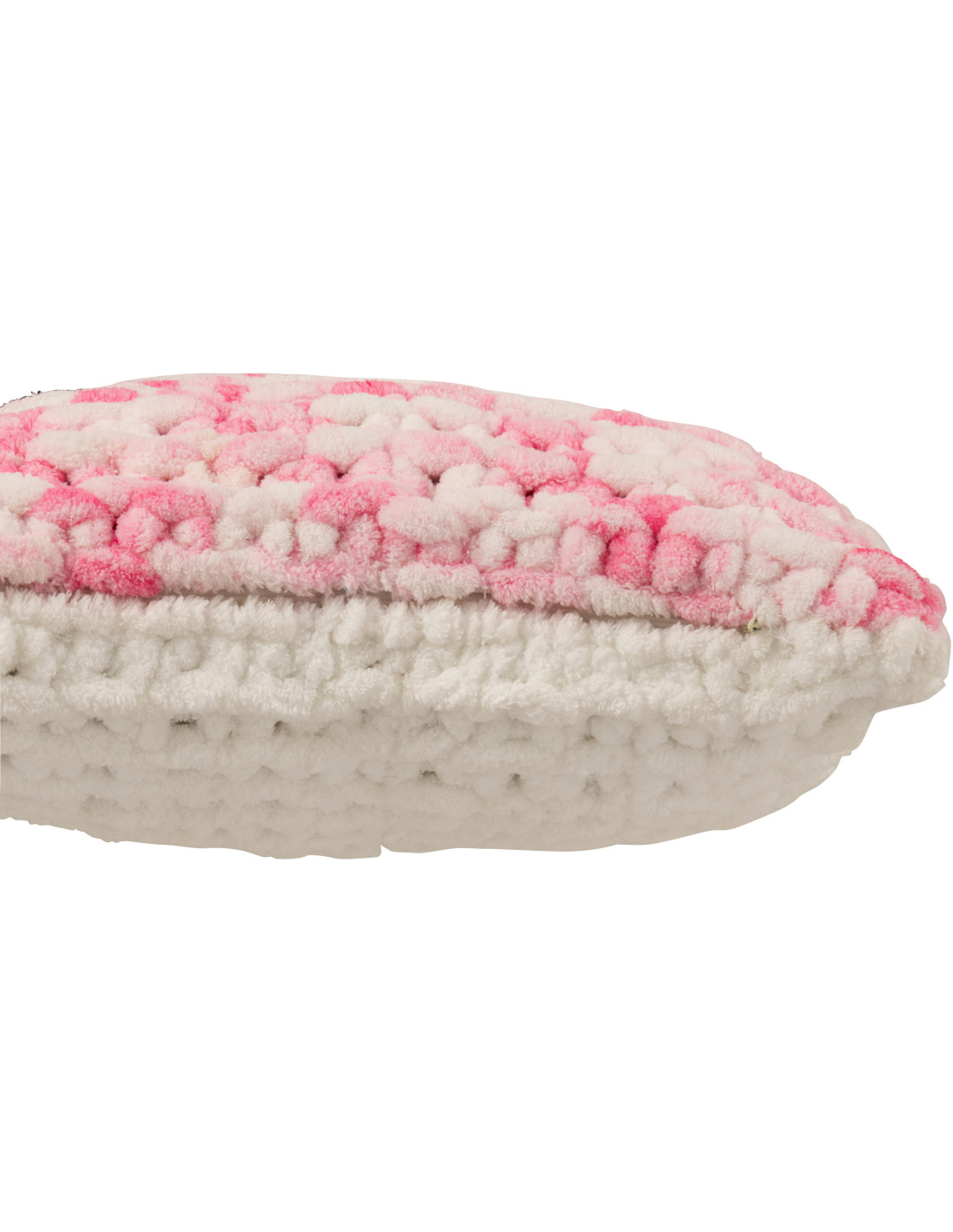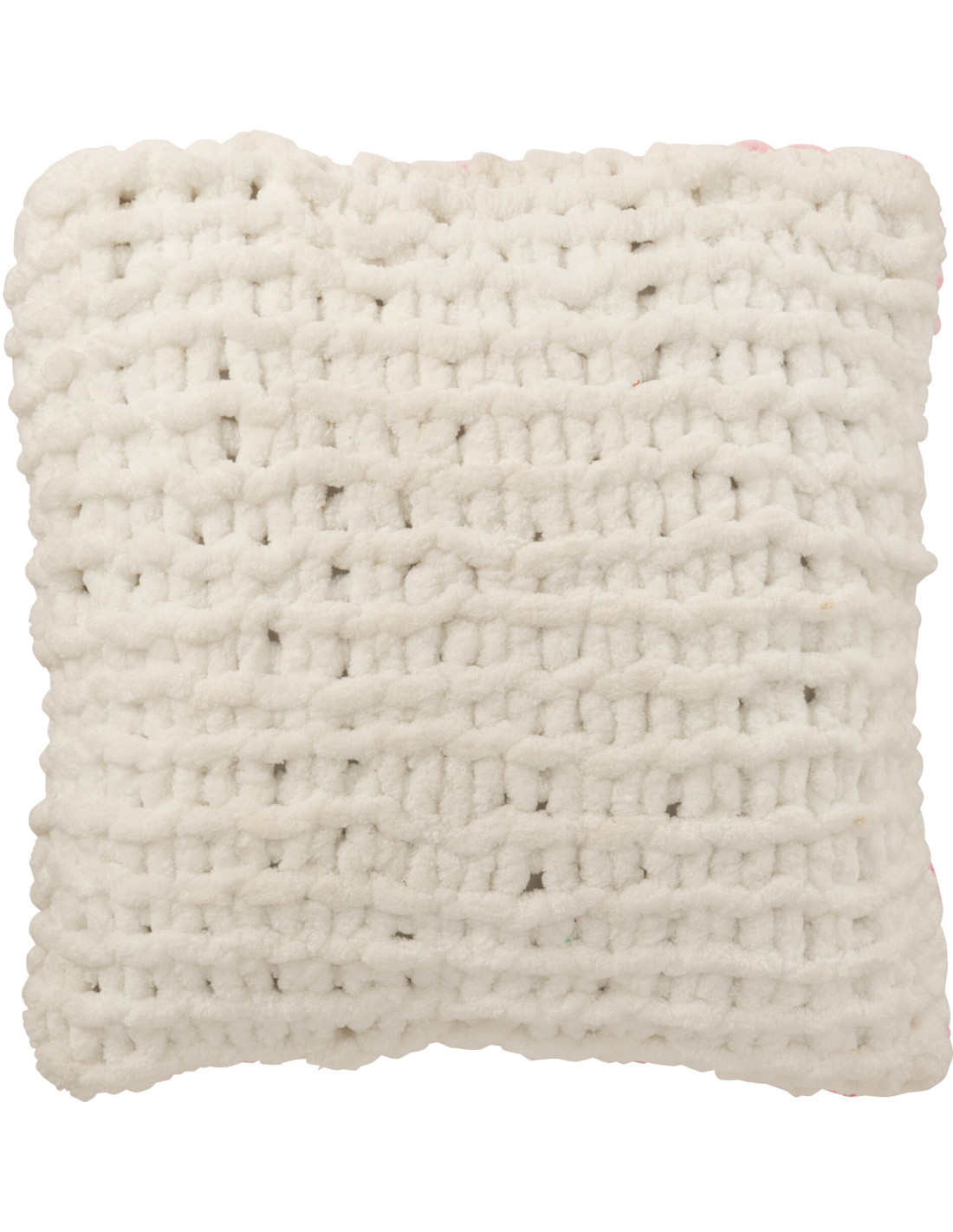 Coussin Tricot douceur Carré 50x50 en Tissu Rose Blanc Motif tricoté Knitty