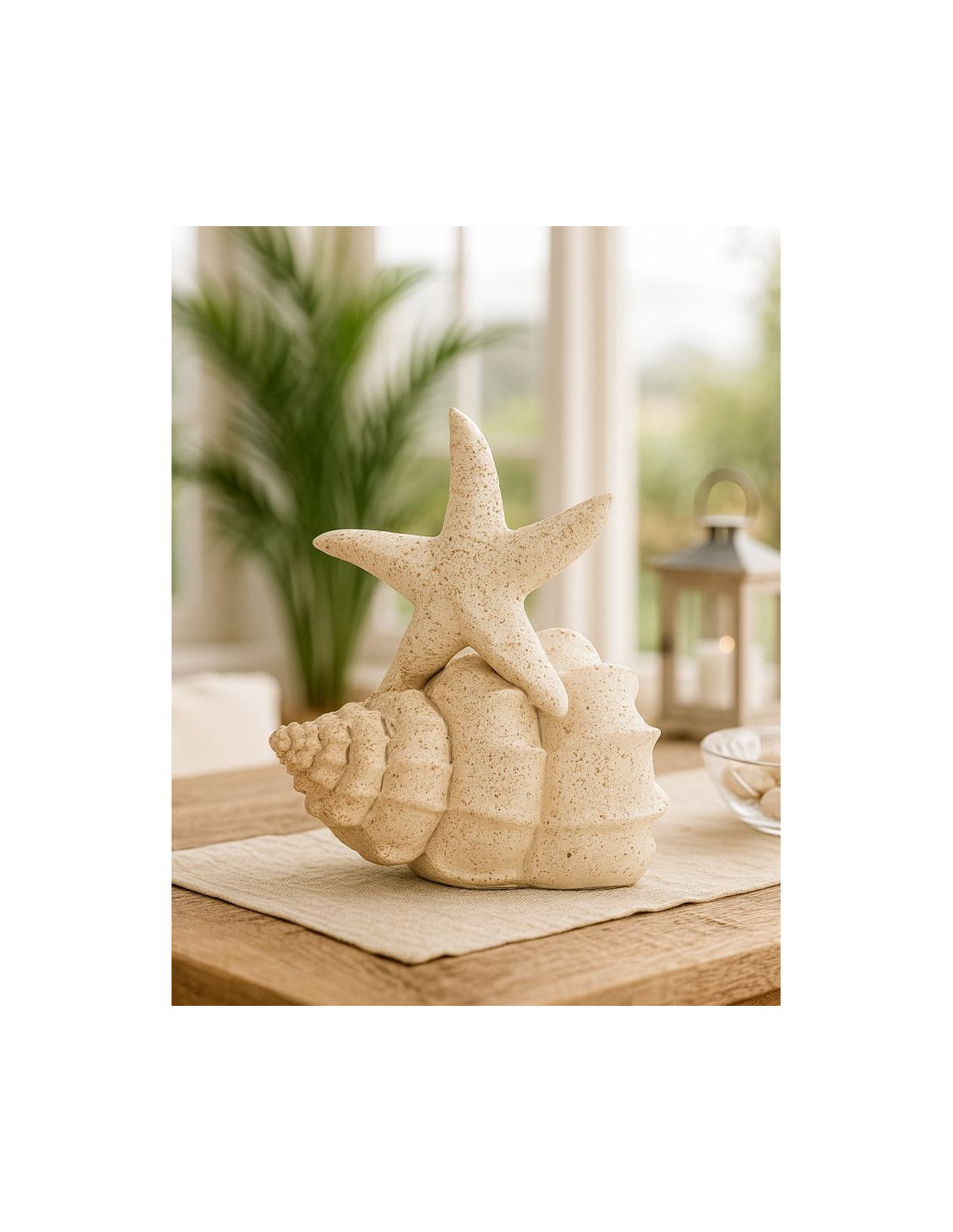 Décoration à poser bord de mer Étoile & Coquillage H 21 cm Résine Beige Marina
