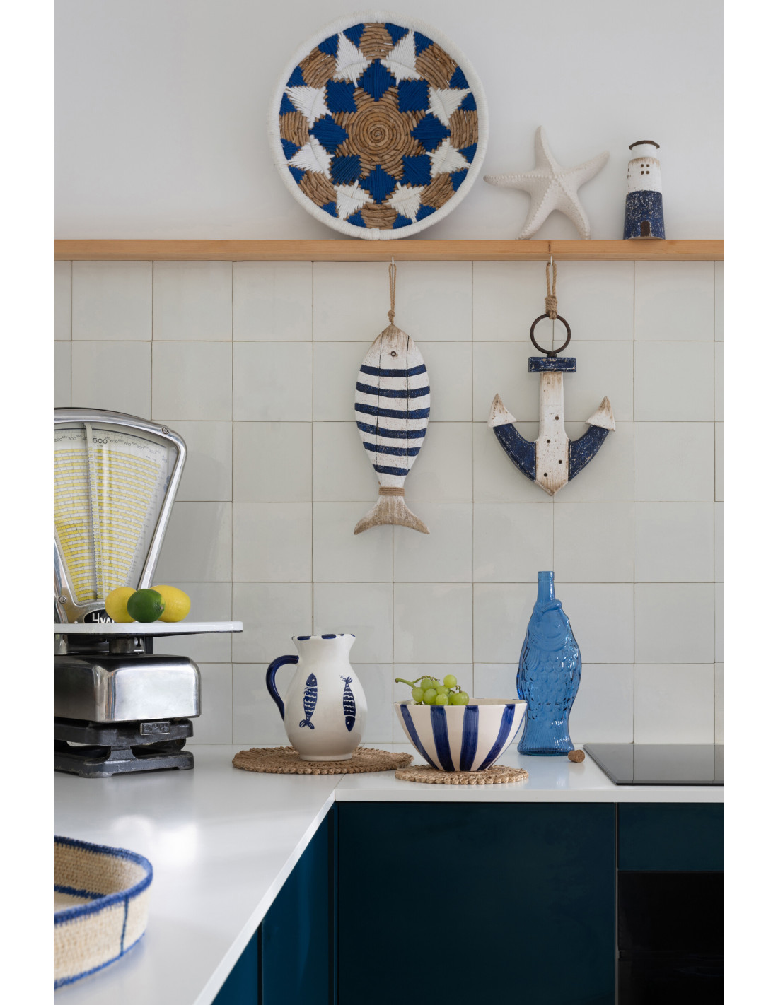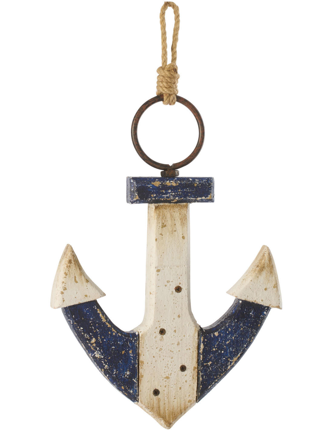 Décoration à suspendre bord de mer Ancre 24 cm Bois de paulownia Bleu foncé Blanc Nautina