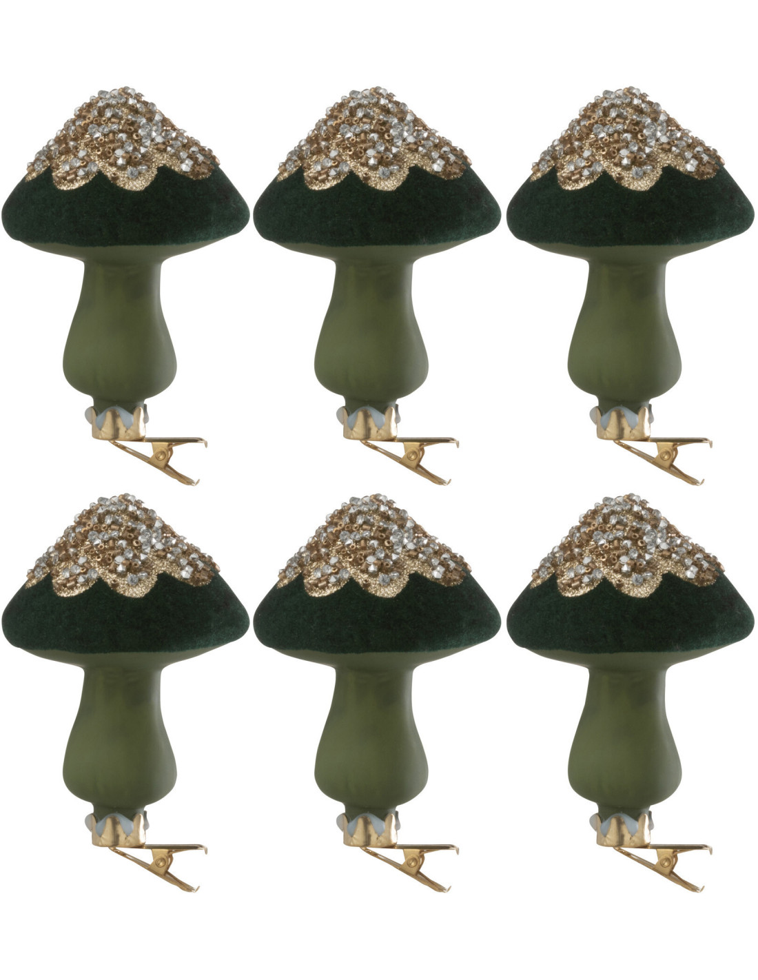 Décoration de Noël à clipser Champignon Hauteur 10 cm en Verre Vert (Lot de 6)