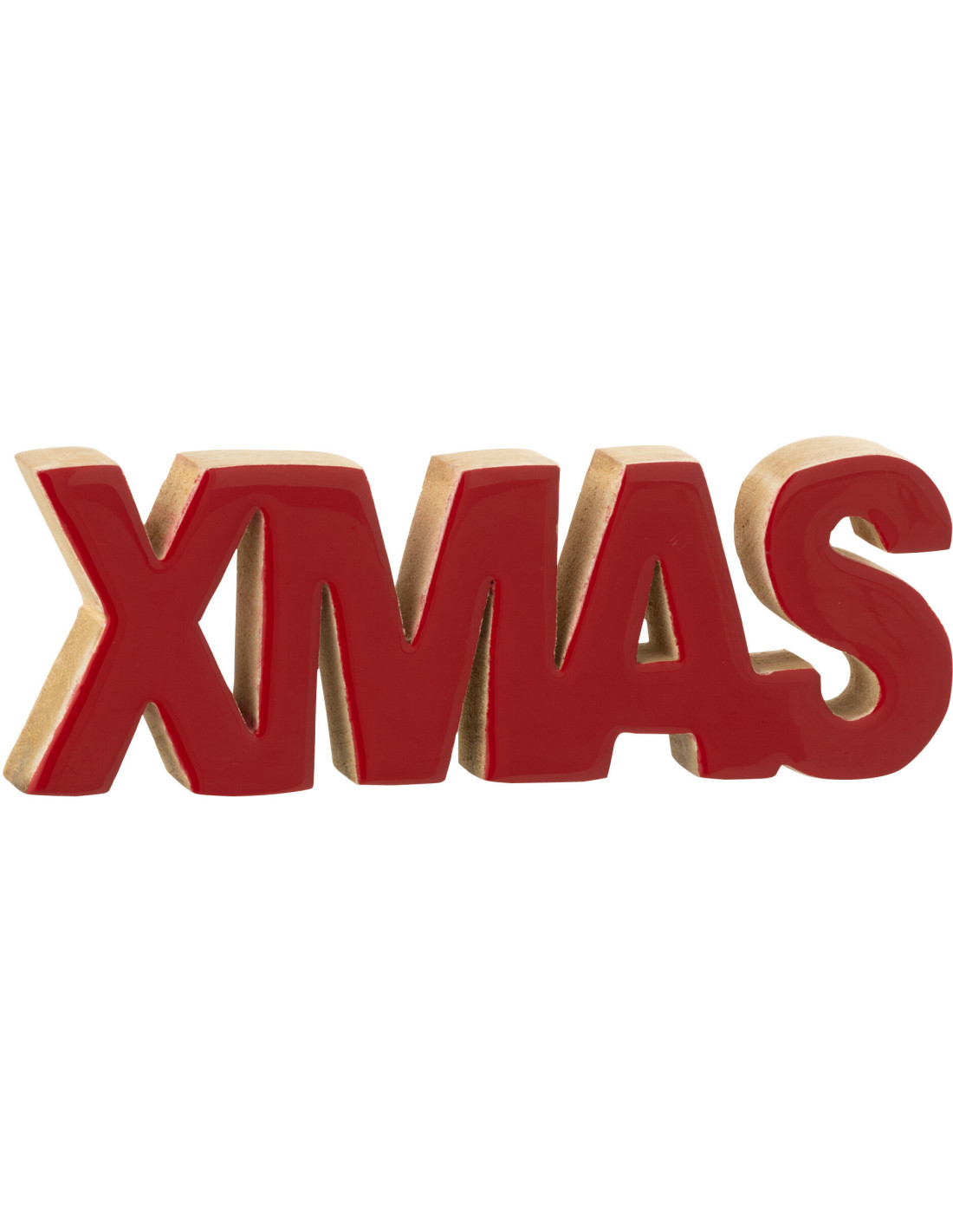 Décoration de Noël à poser Xmas 22 cm en Bois de manguier Rouge Brillant Naturel Wordus