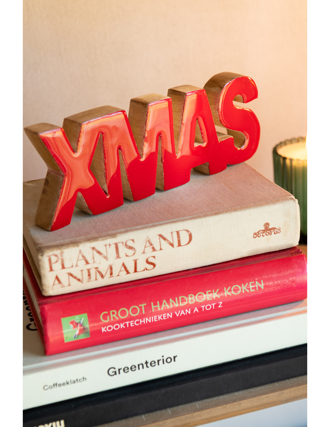 Décoration de Noël à poser Xmas 22 cm en Bois de manguier Rouge Brillant Naturel Wordus - 1