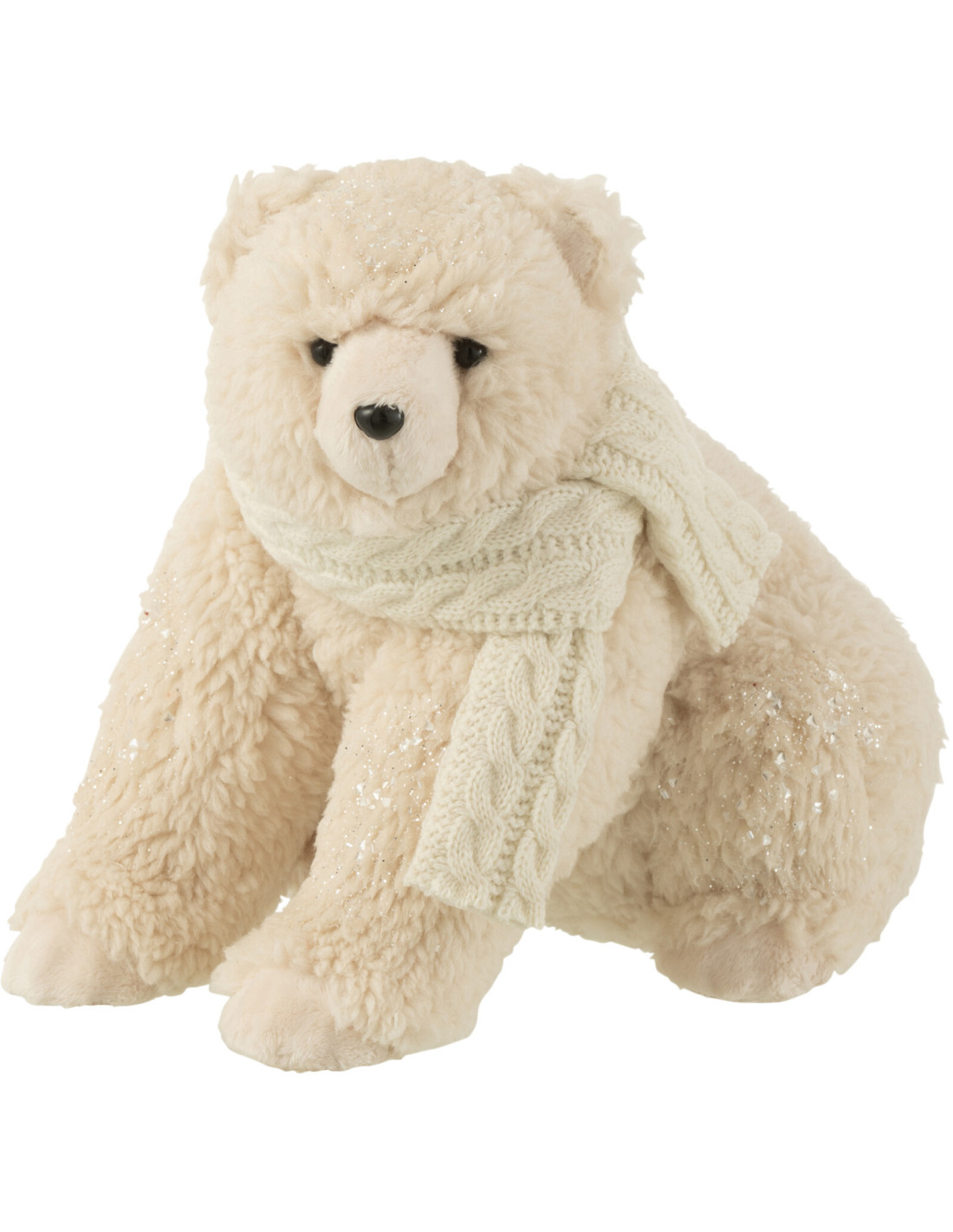 Décoration de Noël Ours polaire assis avec écharpe en Polyester Blanc