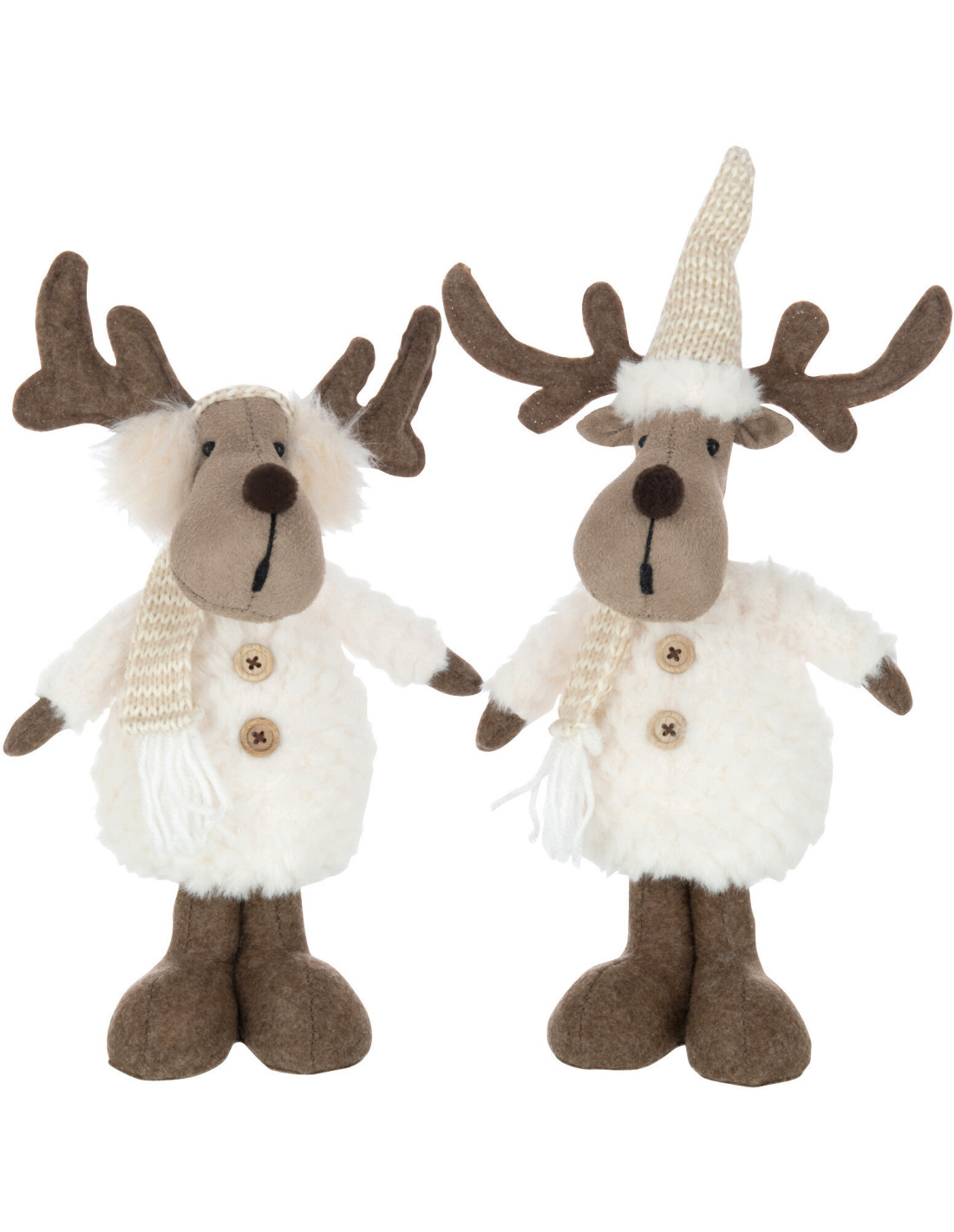 Décoration de Noël Renne Écharpe & Bonnet 35 cm en Polyester Blanc Marron (Lot de 2)