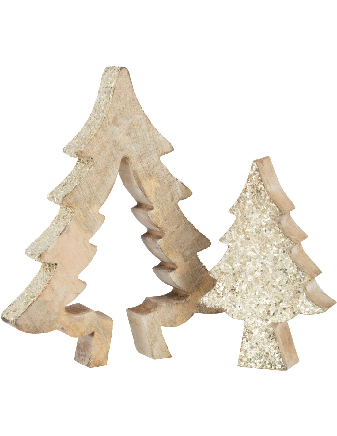 Décoration de Noël Sapin Puzzle en Bois de manguier Naturel Doré Avec paillettes - 1