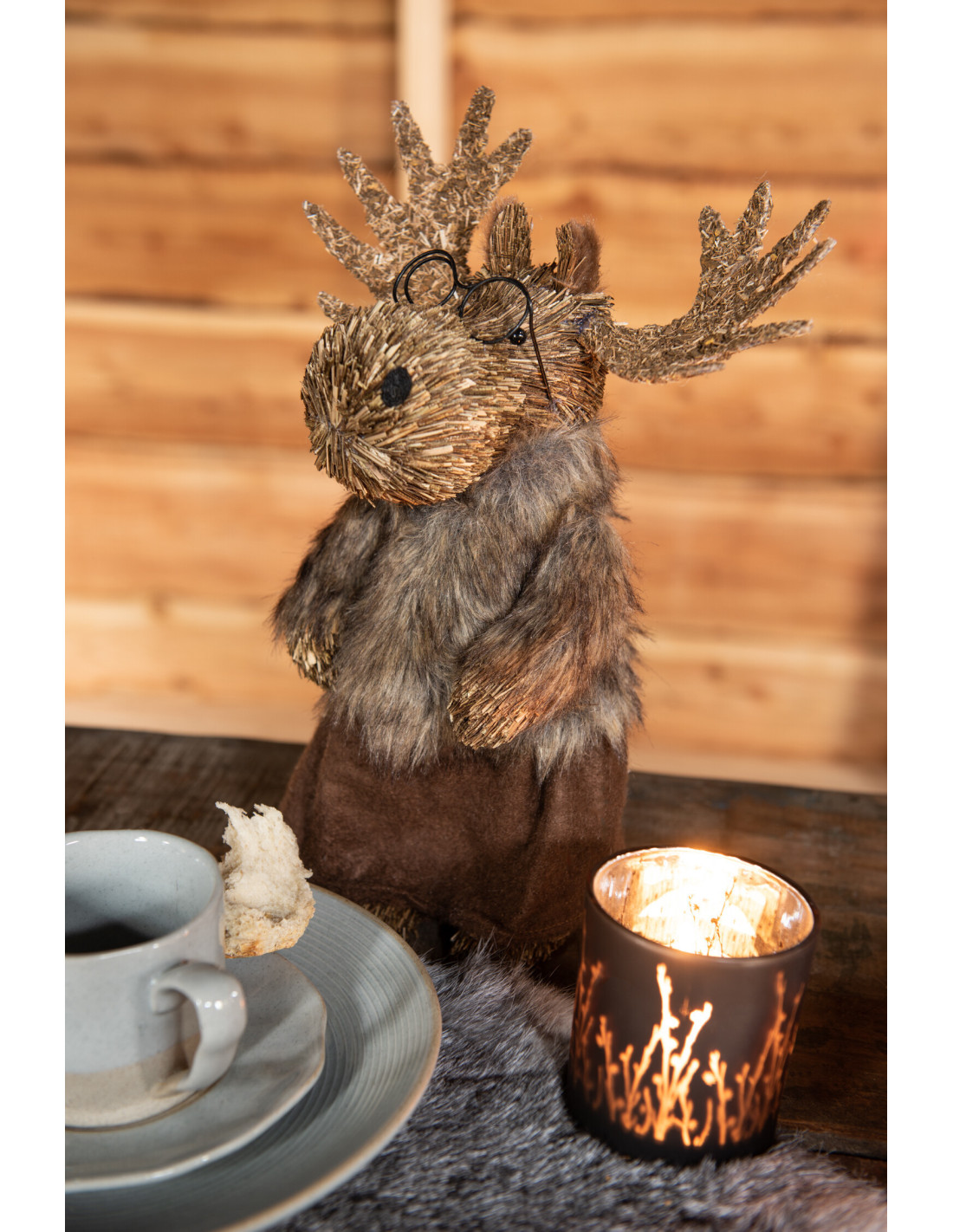 Décoration de Noël XL Élan avec lunettes 30 cm en Paille Naturel Polyester Marron (Lot de 2) - 1
