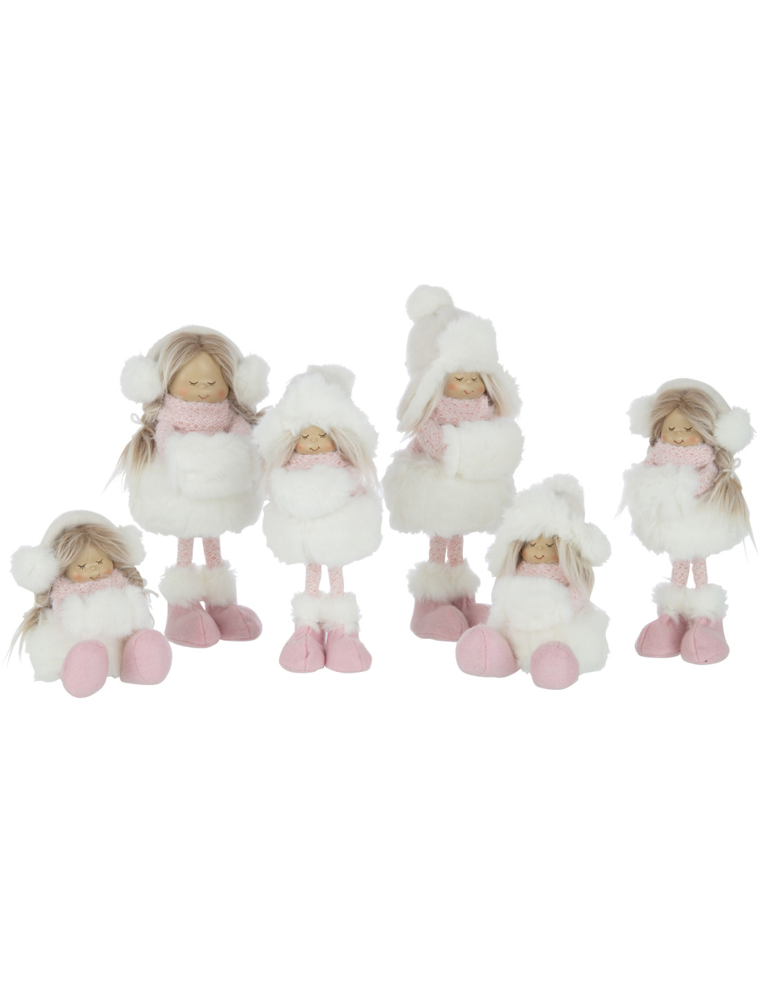 Décoration de Noël XL Fillettes debouts 35 cm en Polyester Blanc Rose (Lot de 2)