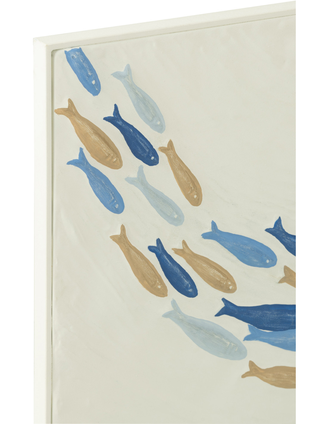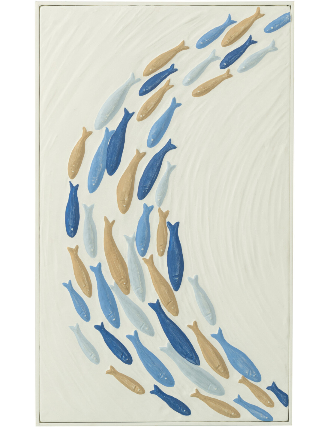 Décoration murale Bord de mer Banc de Poissons 60x36 Métal Blanc cassé Bleu Beige Marélo
