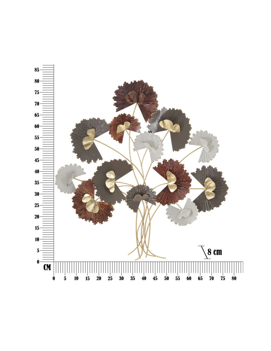 Décoration murale design chic Bouquet Fleurs Métal Doré Taupe Marron rouille Reddy H 80 cm