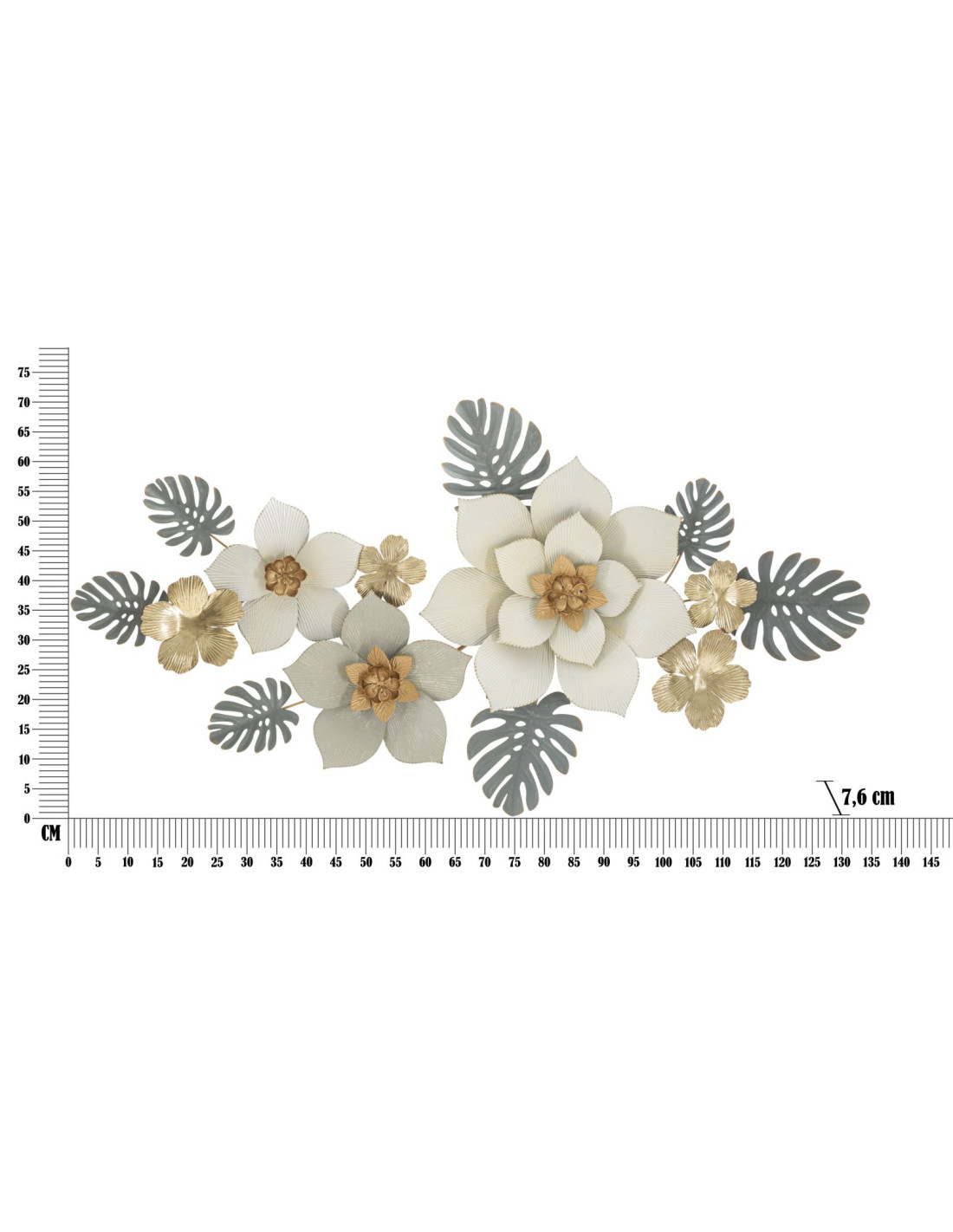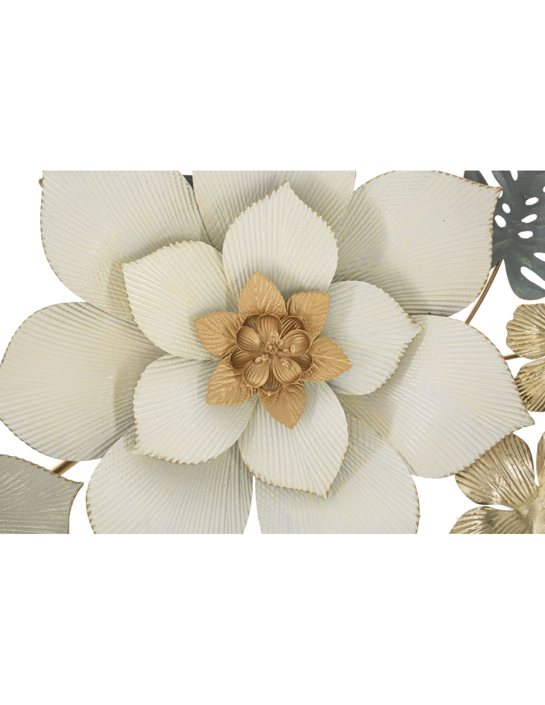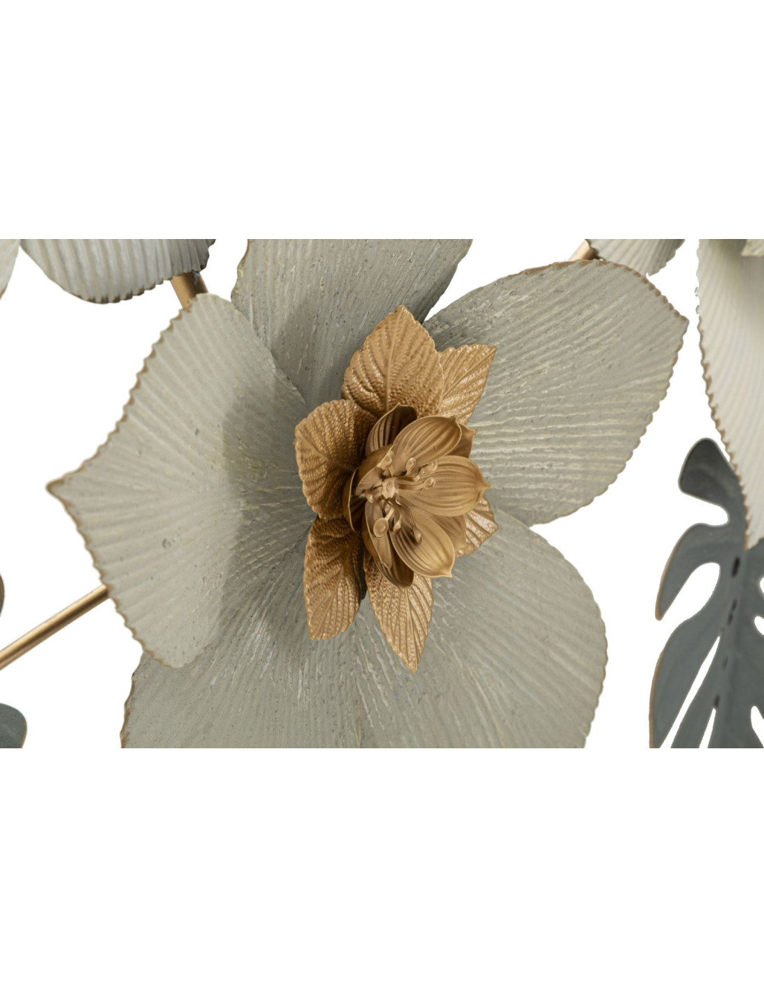 Décoration murale design chic Fleurs Métal Blanc Doré Vert Moty 134 cm