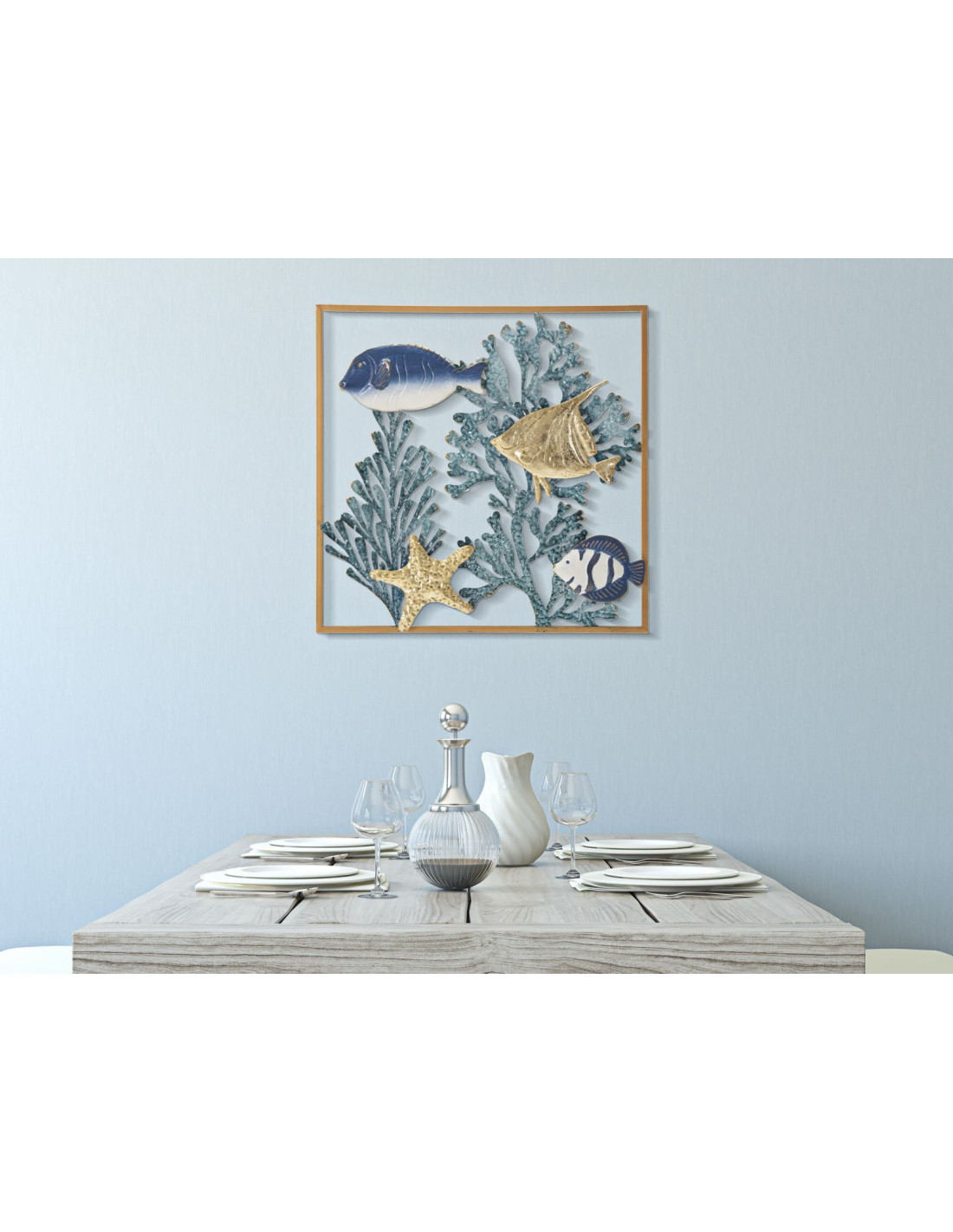 Décoration murale design Fonds marins Métal Doré Bleu Blanc Fish