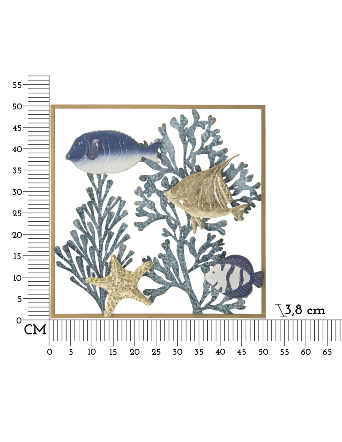 Décoration murale design Fonds marins Métal Doré Bleu Blanc Fish 50,5 cm