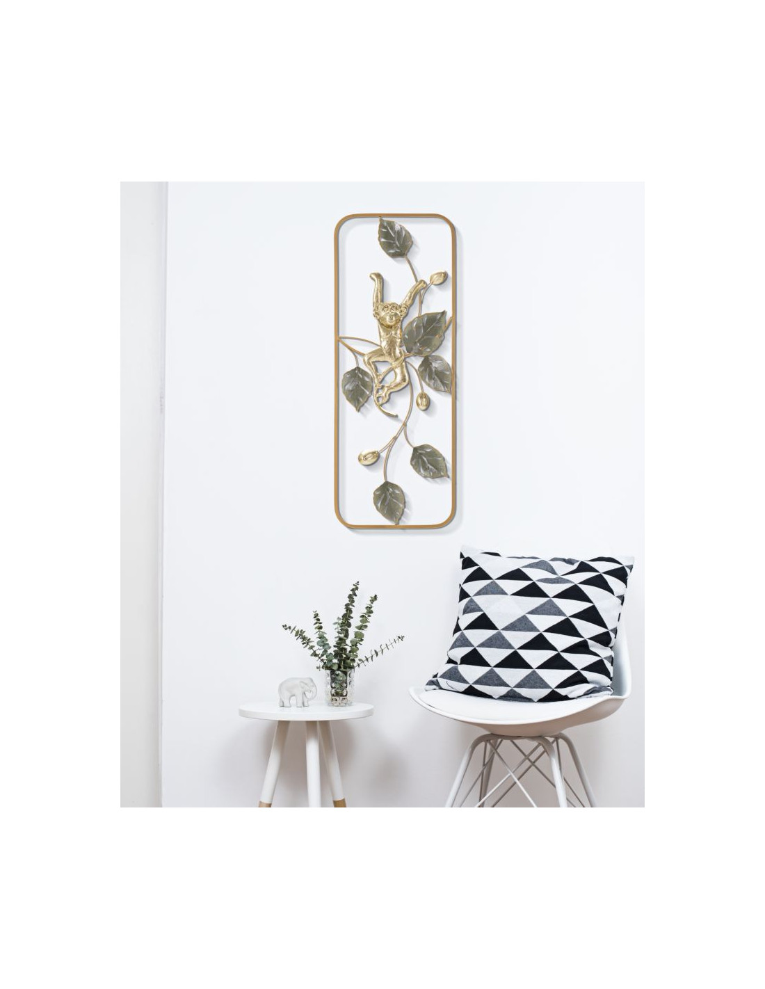 Décoration murale design original Singe & Feuilles Métal Doré Vert Monkey